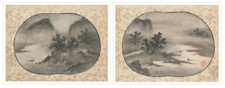 狩野秀頼 「山水図」(団扇形)室町時代