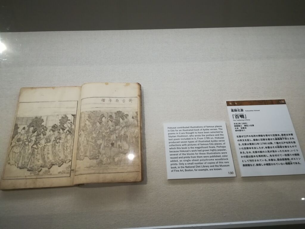 北斎は画号ごとに、主に手がけた版本のジャンルを変えましたが、北斎館では各時期の版本を所蔵しています。後摺になると薄墨や濃墨の版木が省略されてしまい、北斎の挿絵の当初の意図が分からなくなってしまいますが、北斎館所蔵本には薄墨などものこる初摺のものもあり貴重です。