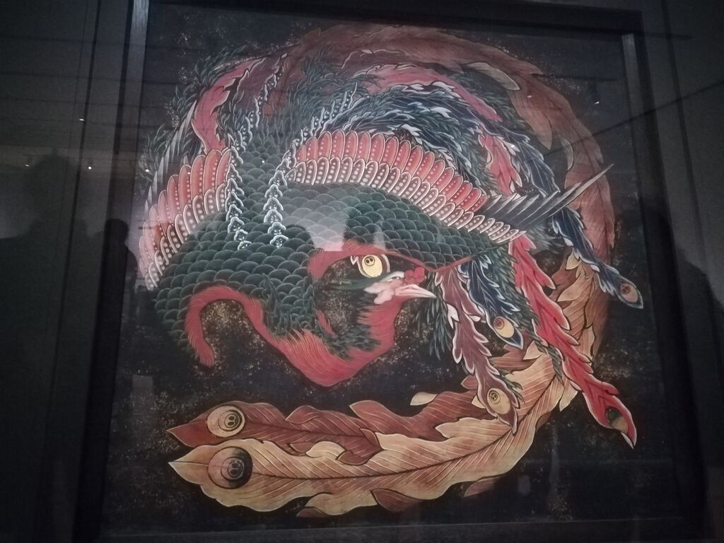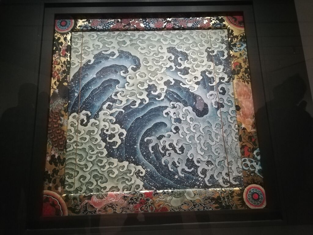 北斎館は「画狂人葛飾北斎の肉筆画美術館」と称するほど北斎の肉筆画のコレクションが充実しており、常時肉筆画を展示する展示室が設置されています。北斎の宗理期から晩年までの肉筆画を所蔵し、北斎の生涯の画業を通してみることができます。小布施・北斎館に展示されている東町祭屋台と上町祭屋台は、各屋台に 2 面ずつ、北斎によって描かれた天井絵が飾られています。東町祭屋台天井絵には「龍」と「鳳凰」、上町祭屋台天井絵には「男浪」と「女浪」。本展ではその中から「鳳凰」と「男浪」を展示。迫力のある祭屋台天井絵「鳳凰」「男浪」を東京で見ることができます!