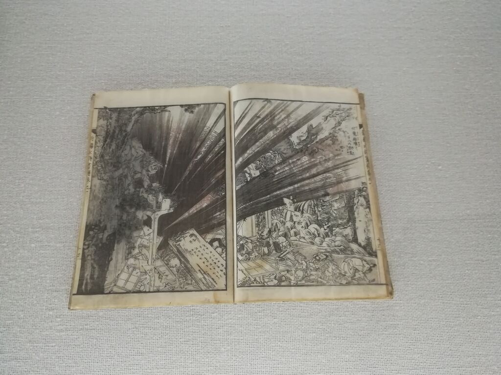 葛飾北斎「新編水滸画伝 初編」 文化2年(1805)魔物が飛び出す場面では、茶の薄墨を見ることができ、初摺ならではの美しさが際立つ作品。