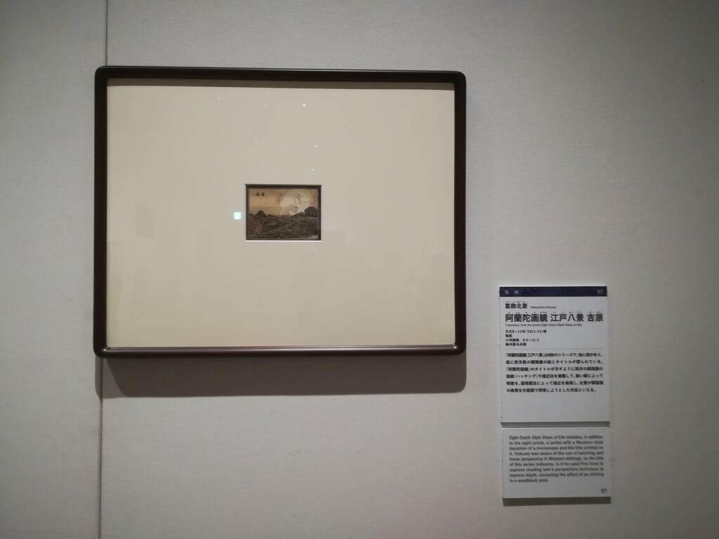 額縁のような枠を持つ、小判の風景画です。銅版画に興味を持っていた北斎が、これを木版画に再現しようとしたもので、北斎が西洋画への関心がわかる興味深い作品。