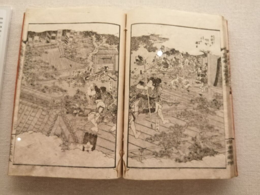 北斎の武者絵を収録した版本『和漢絵本魁』(『絵本魁』初篇)、『絵本武蔵鐙』、『絵本和漢誉』は、展示してあるページと異なるページもパネルで楽しめる。