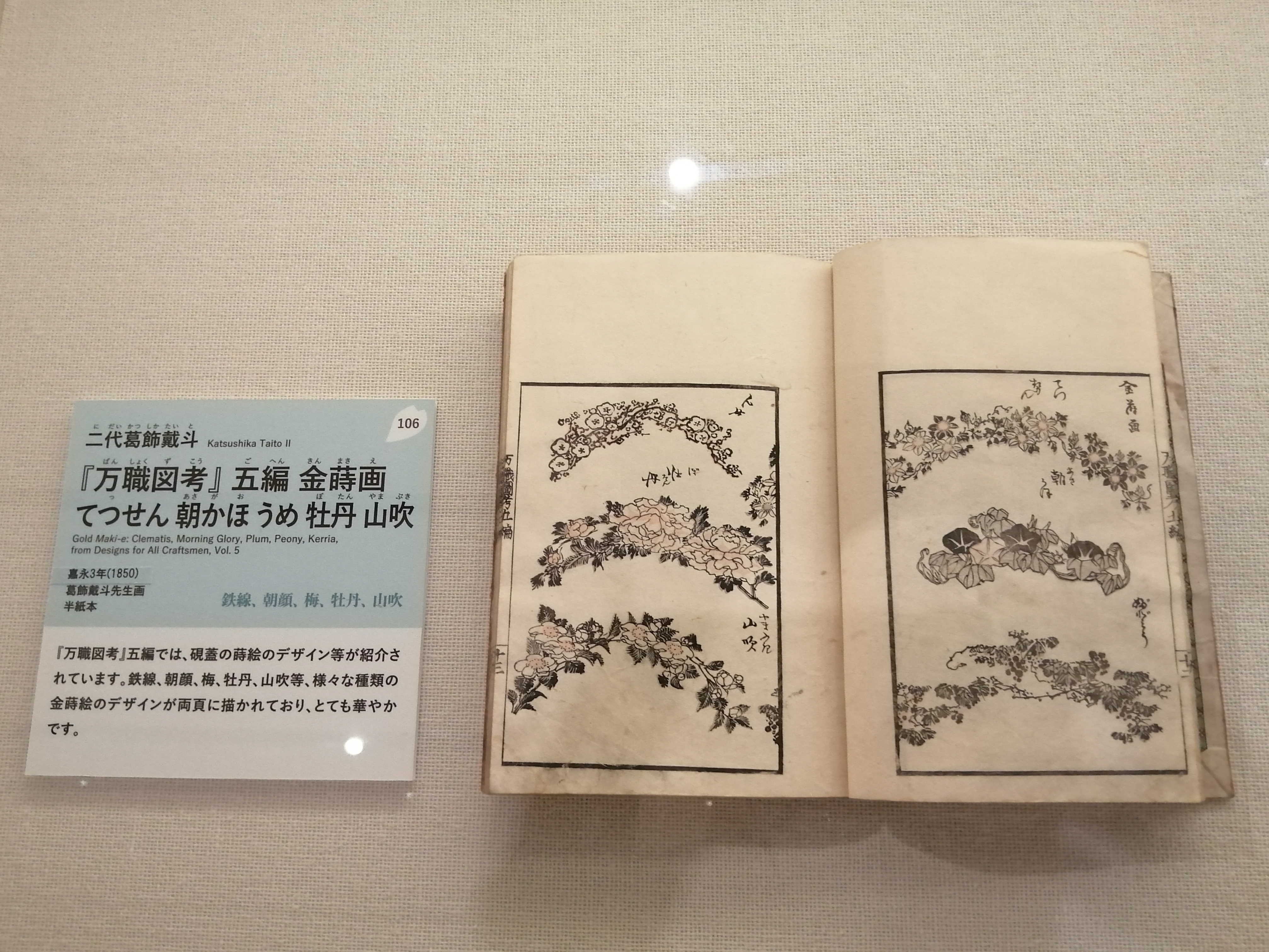 二代葛飾戴斗 『万職図考』五編 金蒔画 てつせん 朝かほ うめ 牡丹 山吹 すみだ北斎美術館蔵(通期)