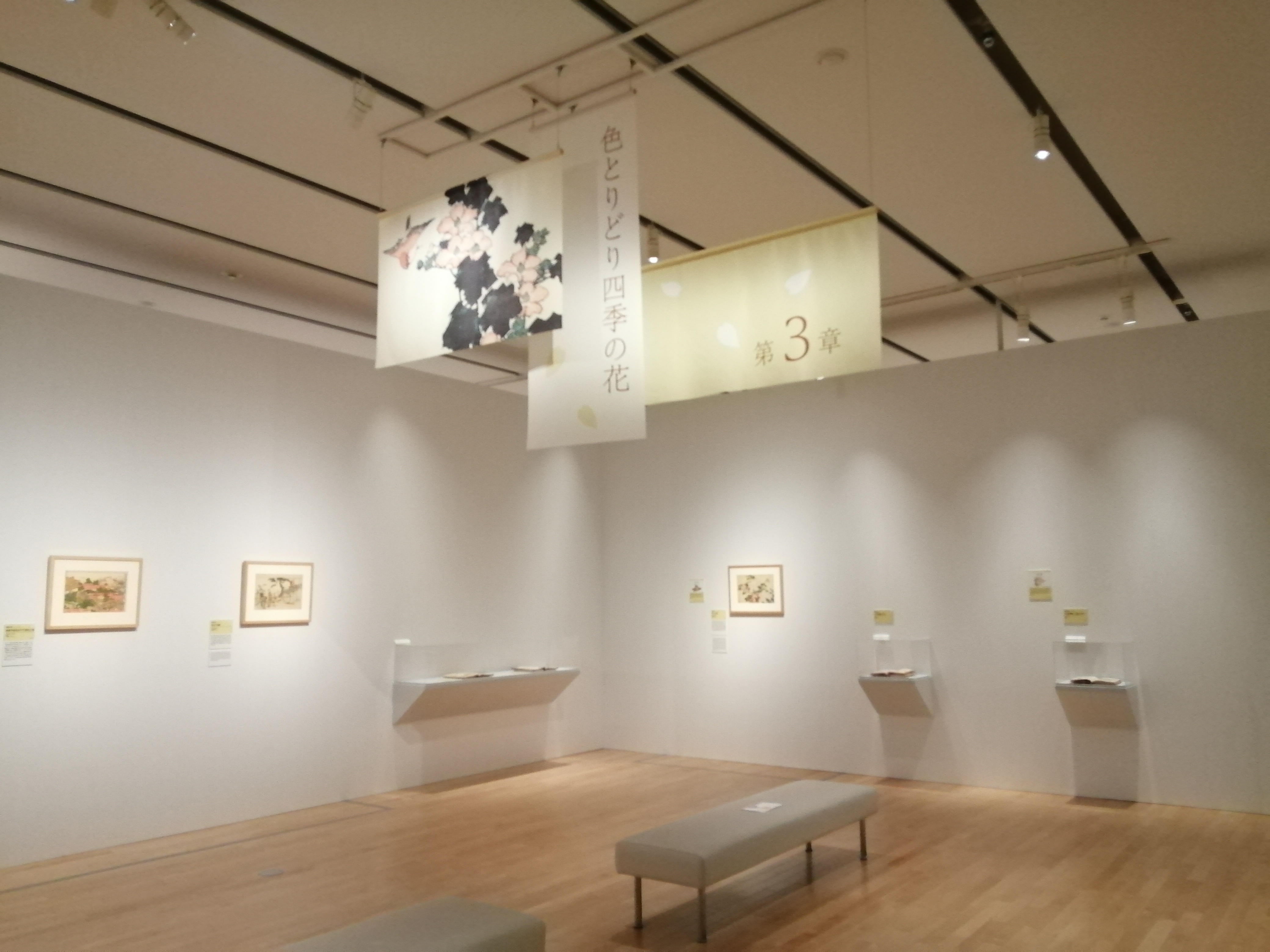 この章では、現代の四季感に基づき、春(3月〜5月)、夏(6月〜8月)、秋(9月〜11月)、冬(12月〜2月)に区分し、季節の花々が描かれた作品を紹介。牡丹、桔梗、椿など、精細に描かれた季節の花々の魅力が楽しめます。