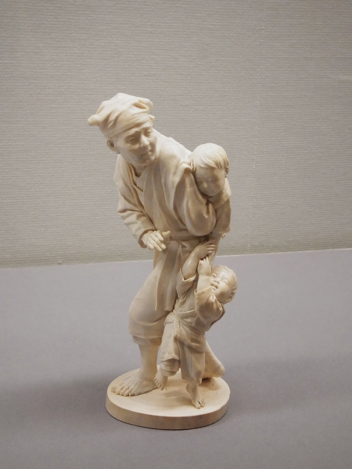兄にすがる楽しそうな弟、持ち上げようとする兄の優しさ、老人の慈愛に満ちた表情が、とても繊細に表現されています。