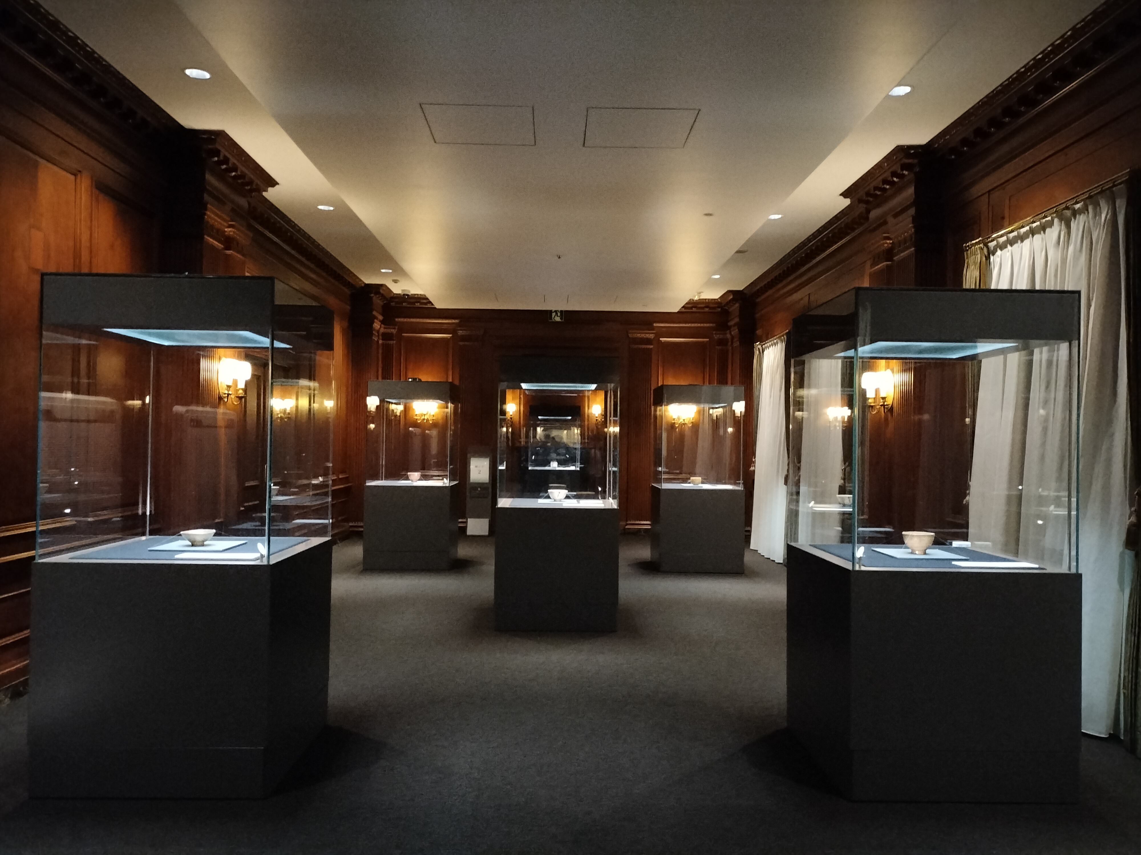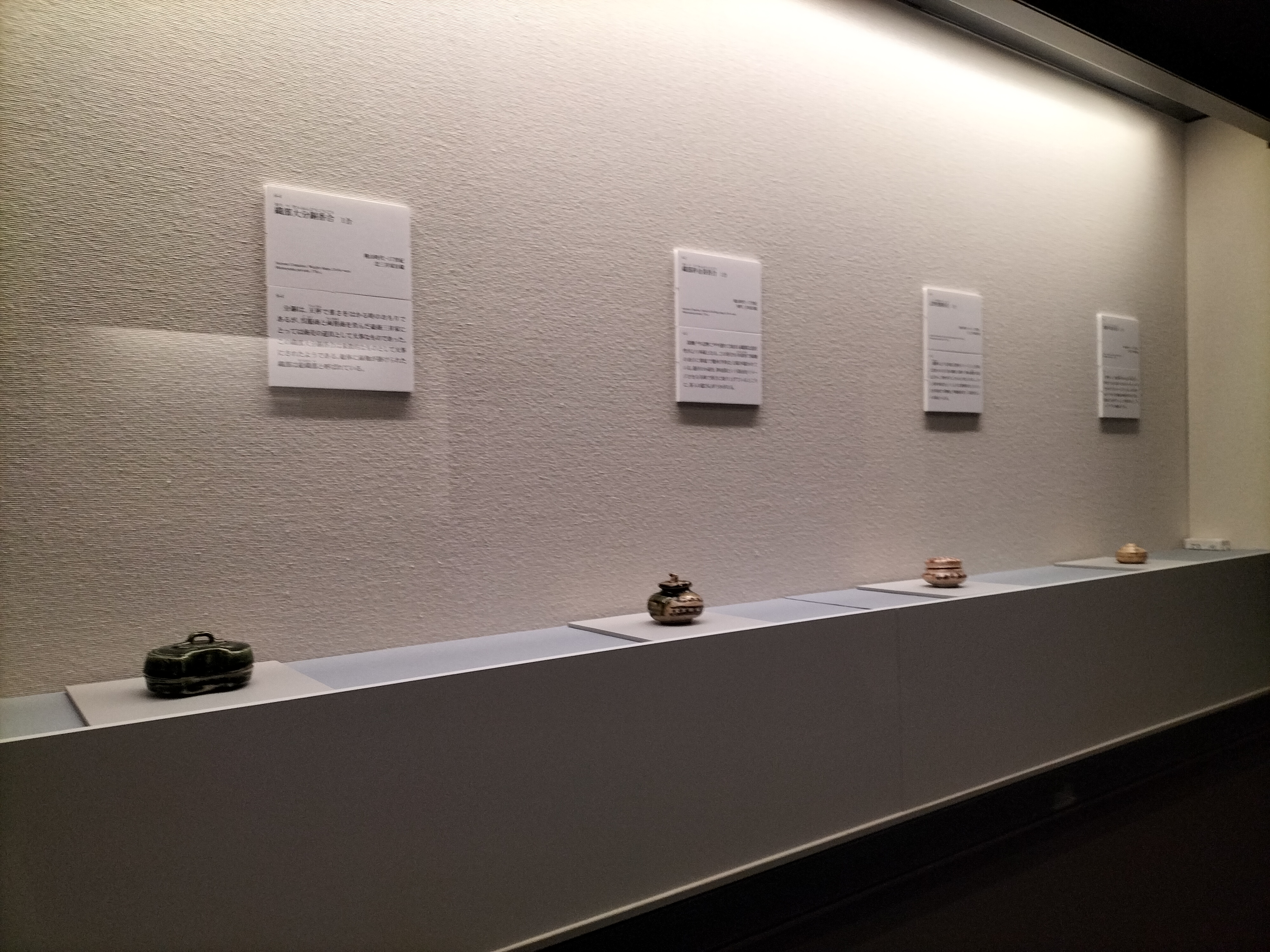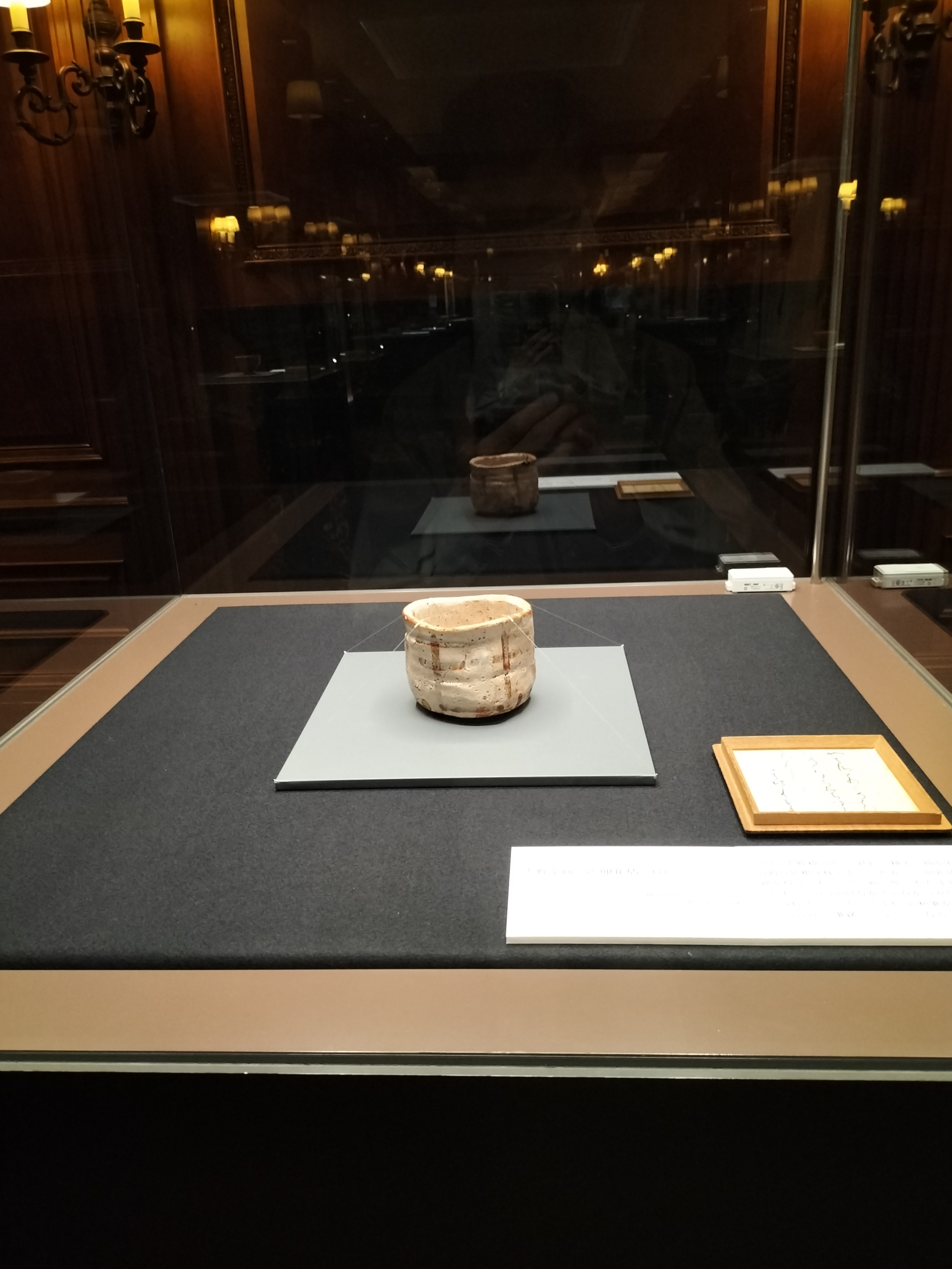ここでは前期には国宝の「志野茶碗 銘卯花墻」が展示。日本で焼かれた陶磁器の中で、国宝は2碗しかありませんが、そのうちの貴重な1碗です。銘はその景色から連想される古歌によって付けられました。後期には重要文化財の玳皮盞鸞天目(8/9~9/19展示)が展示されます。