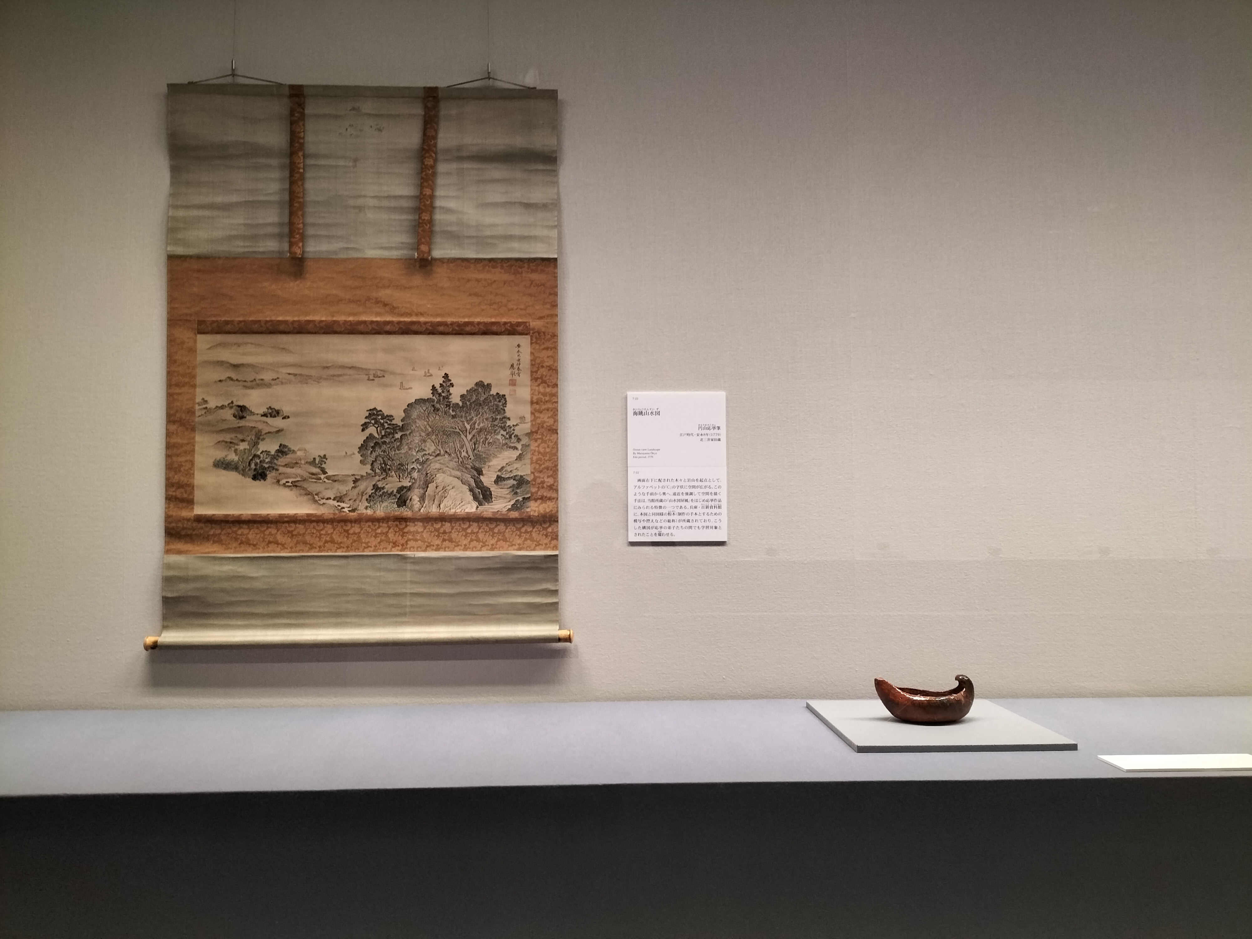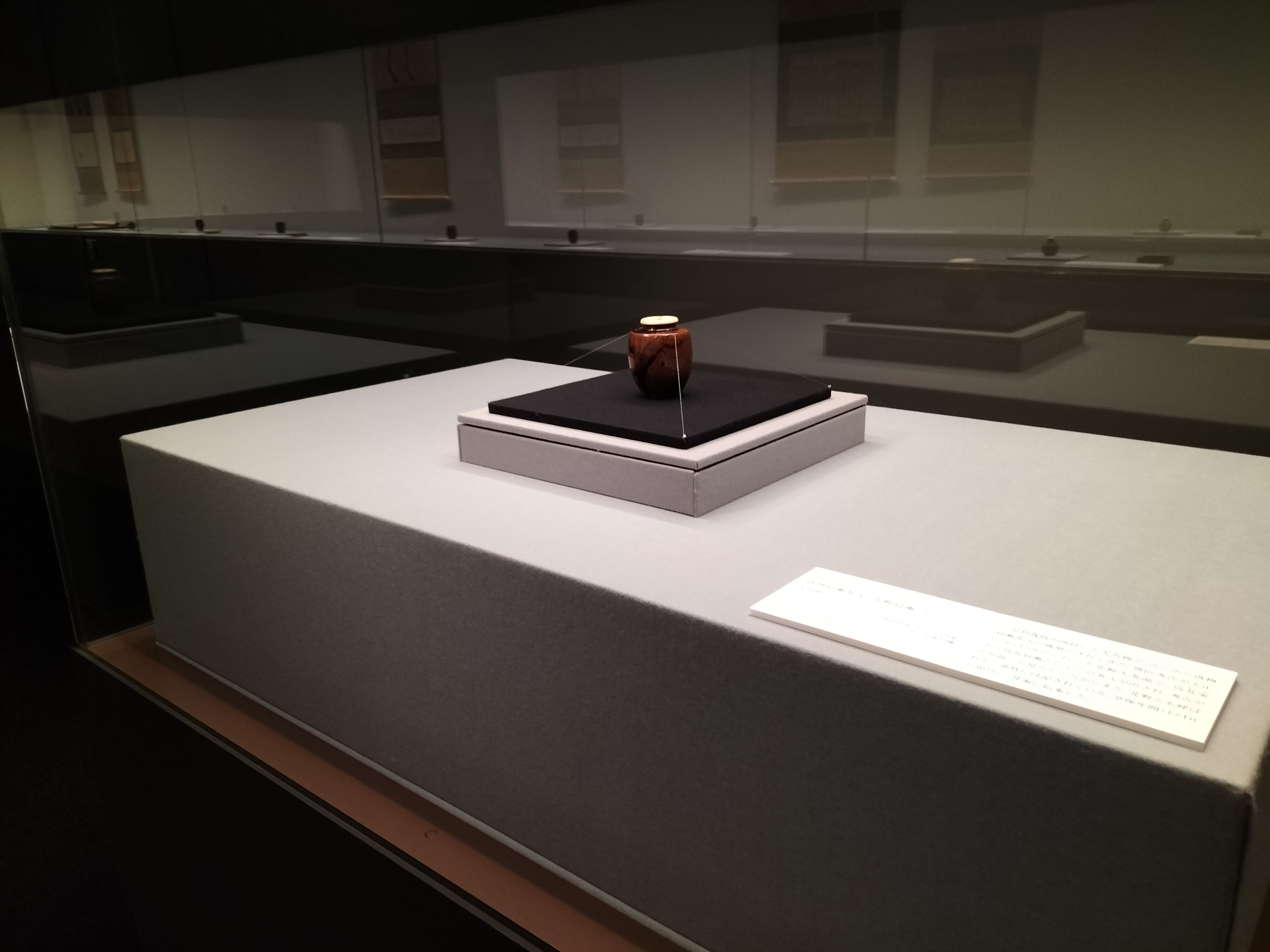足利義政所持とされる大名物で重要文化財の北野肩衝は前期展示。唐物肩衝茶入を代表する優品として、茶道文化史上とても貴重な作品です。