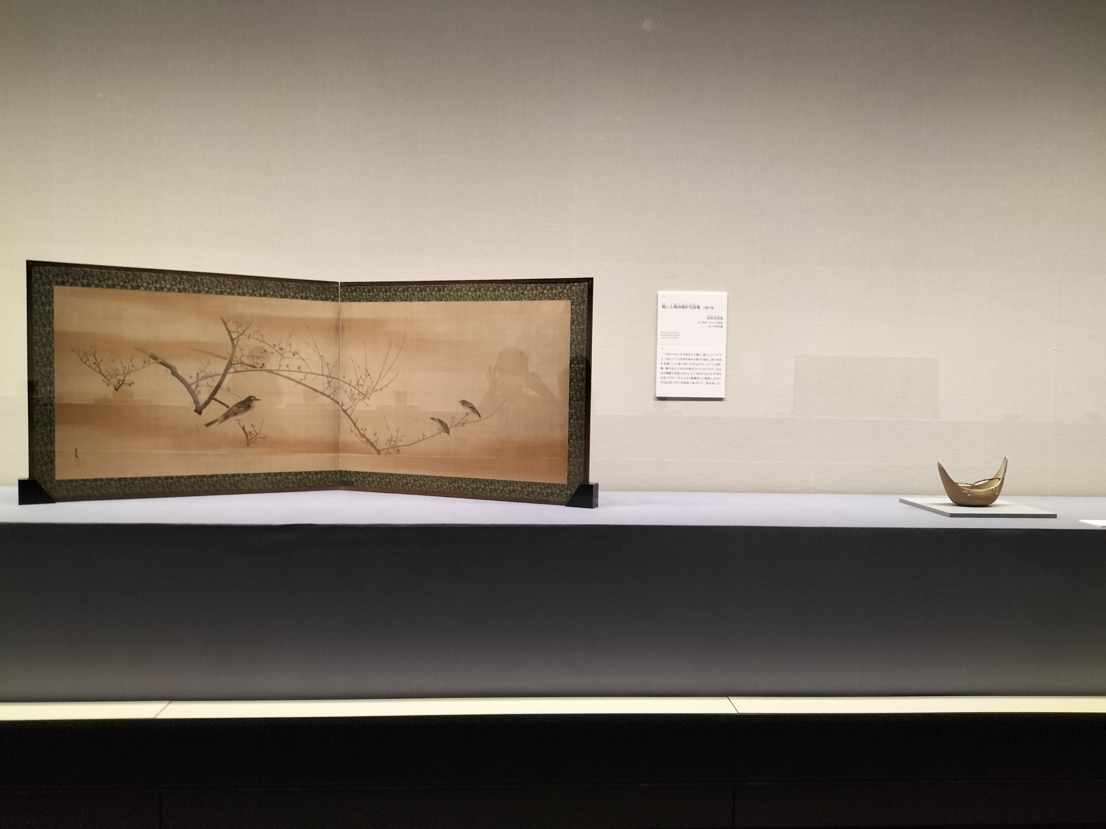 左:「梅に小禽図風炉先屏風」2曲1隻 松村呉春 江戸時代・18世紀