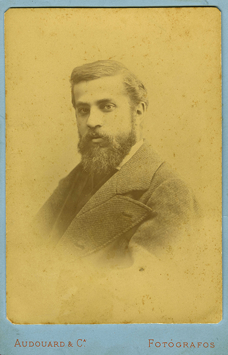 恥ずかしがり屋で人前に出ることを嫌ったガウディは写真嫌いでも有名でした。きちんと顔が映った無帽の写真は5点しかなく、このポートレート写真は、建築学校を卒業して間もない頃の貴重な1枚です。