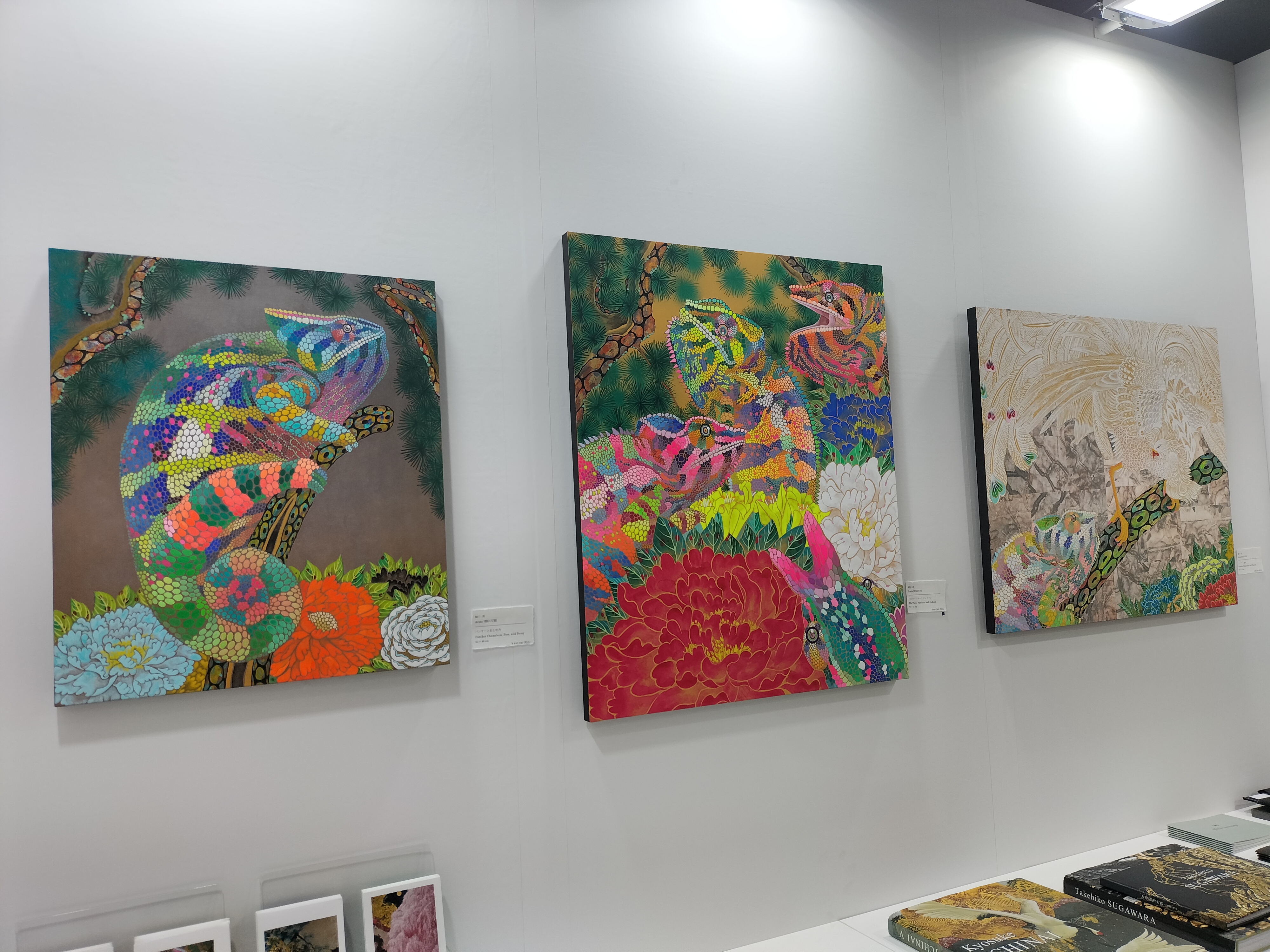 「サテライツ・アート・ラボ」では、日本人の父とアメリカ人の母を持ち、現在、世界をステージに活躍する森勉の作品を紹介。鮮やかな色彩感覚で表現された動物たちや風神雷神など、躍動的で美しい彼独特の世界が楽しめるブースです。