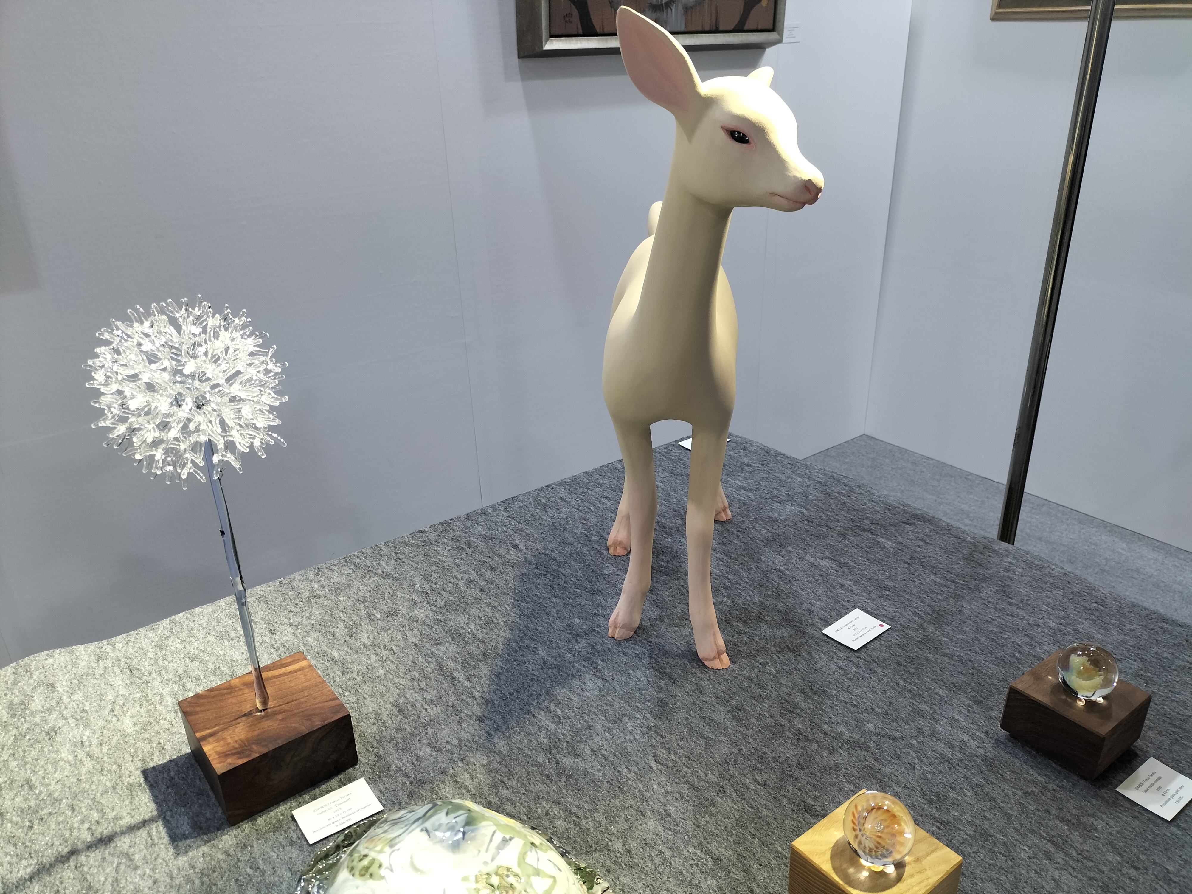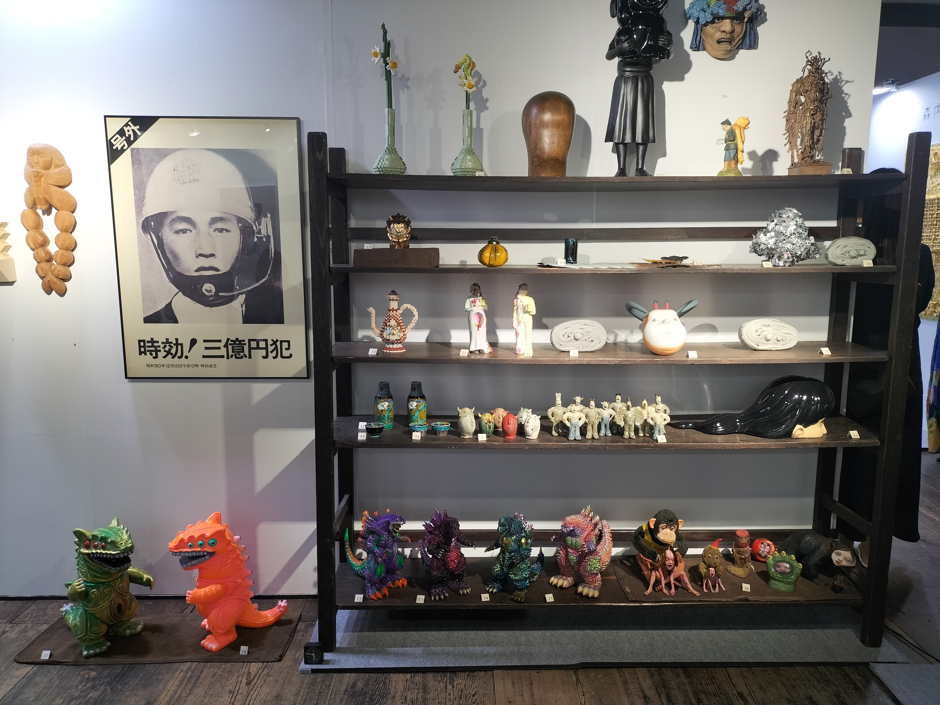 「メグミオギタギャラリー」は、伝統的技法や素材を用いながら作品の仕上がりにこだわりを持つ作家の作品など、表現の渇望・情熱を直接的に伝える作家の作品を、国内外で紹介しているギャラリー。中央は土屋仁応の作品。
