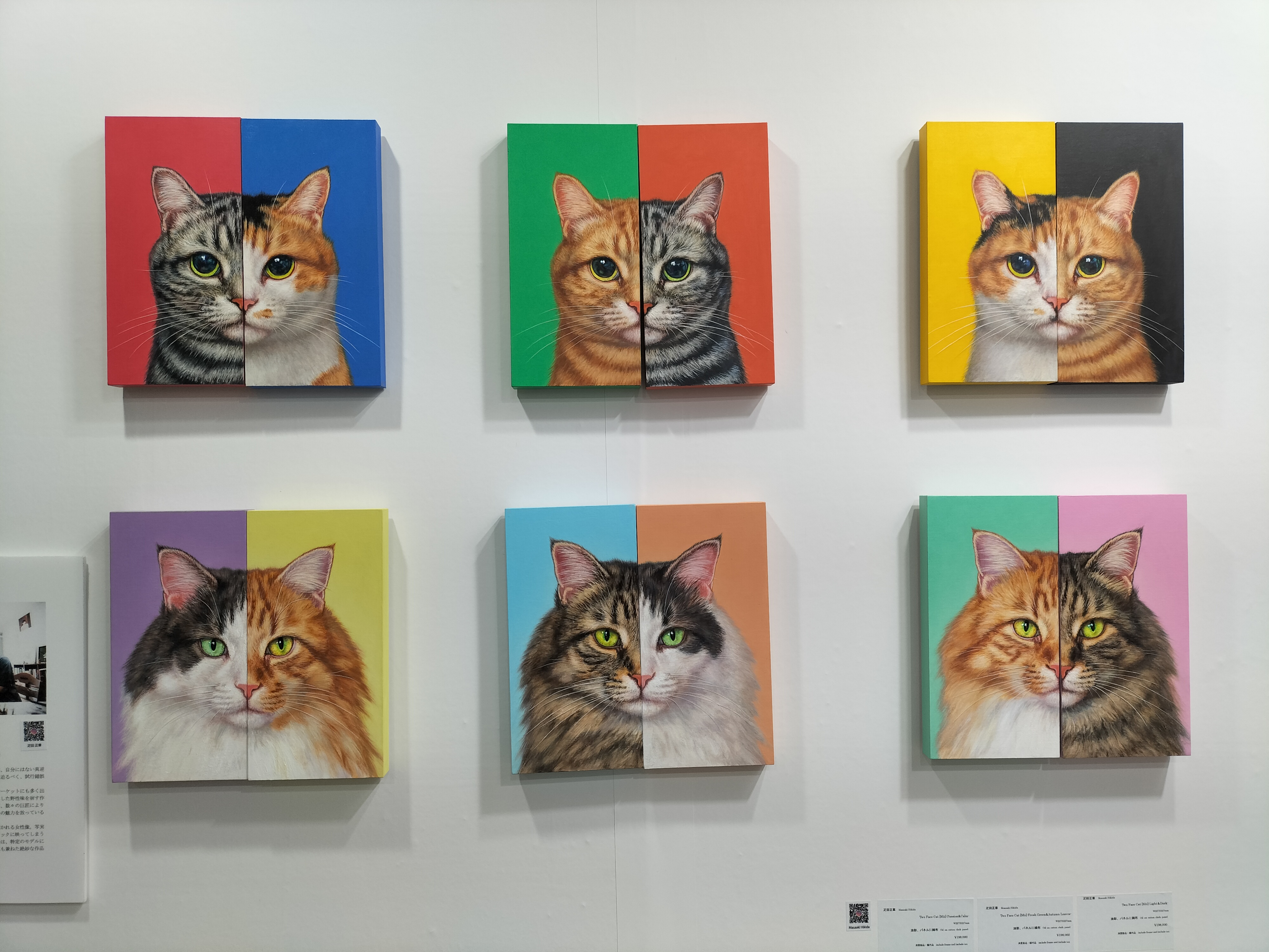 「Gallery Seek」では、人物や猫をモチーフにした作品を中心に制作している疋田正章の作品などを展示。これは二つの顔を持つ猫のシリーズ作品。