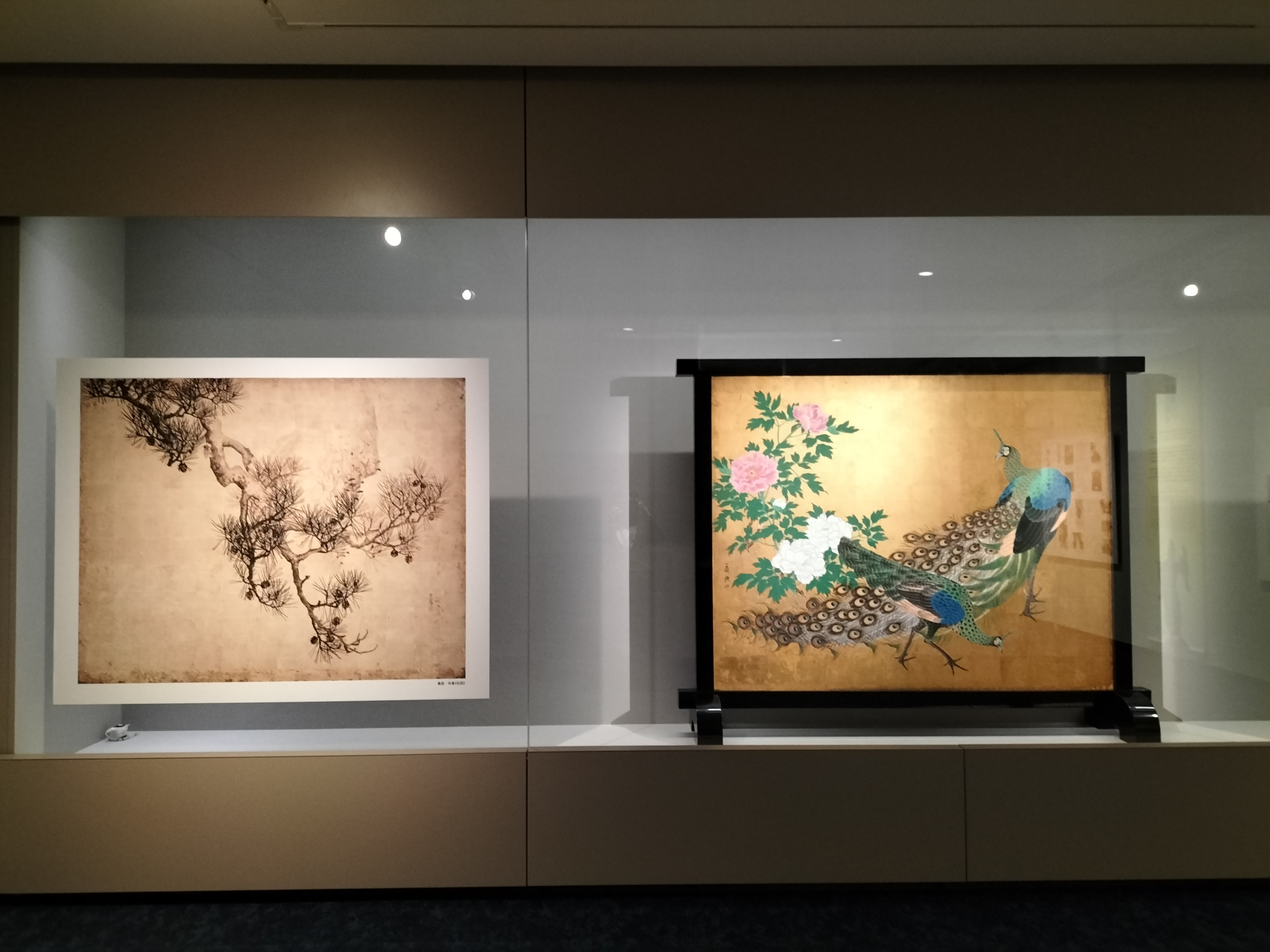 呉春・亀岡規礼《松・牡丹孔雀図衝立》江戸時代(18ー19世紀) 泉屋博古館