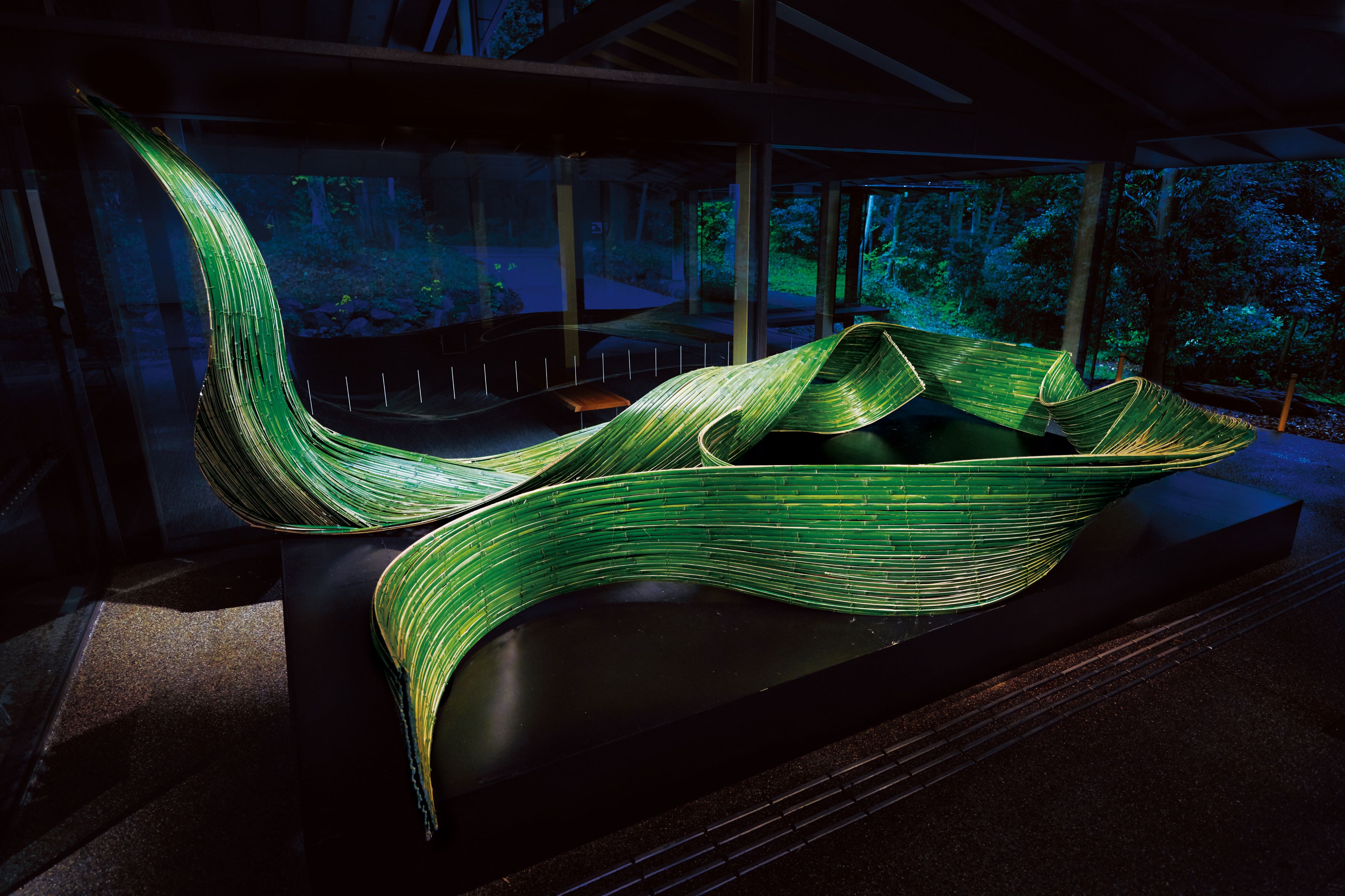 峰玉亭では各部屋にダニエル・オストが竹とコラボした作品などが展示され、伝統的な日本家屋との融合が楽しめます。