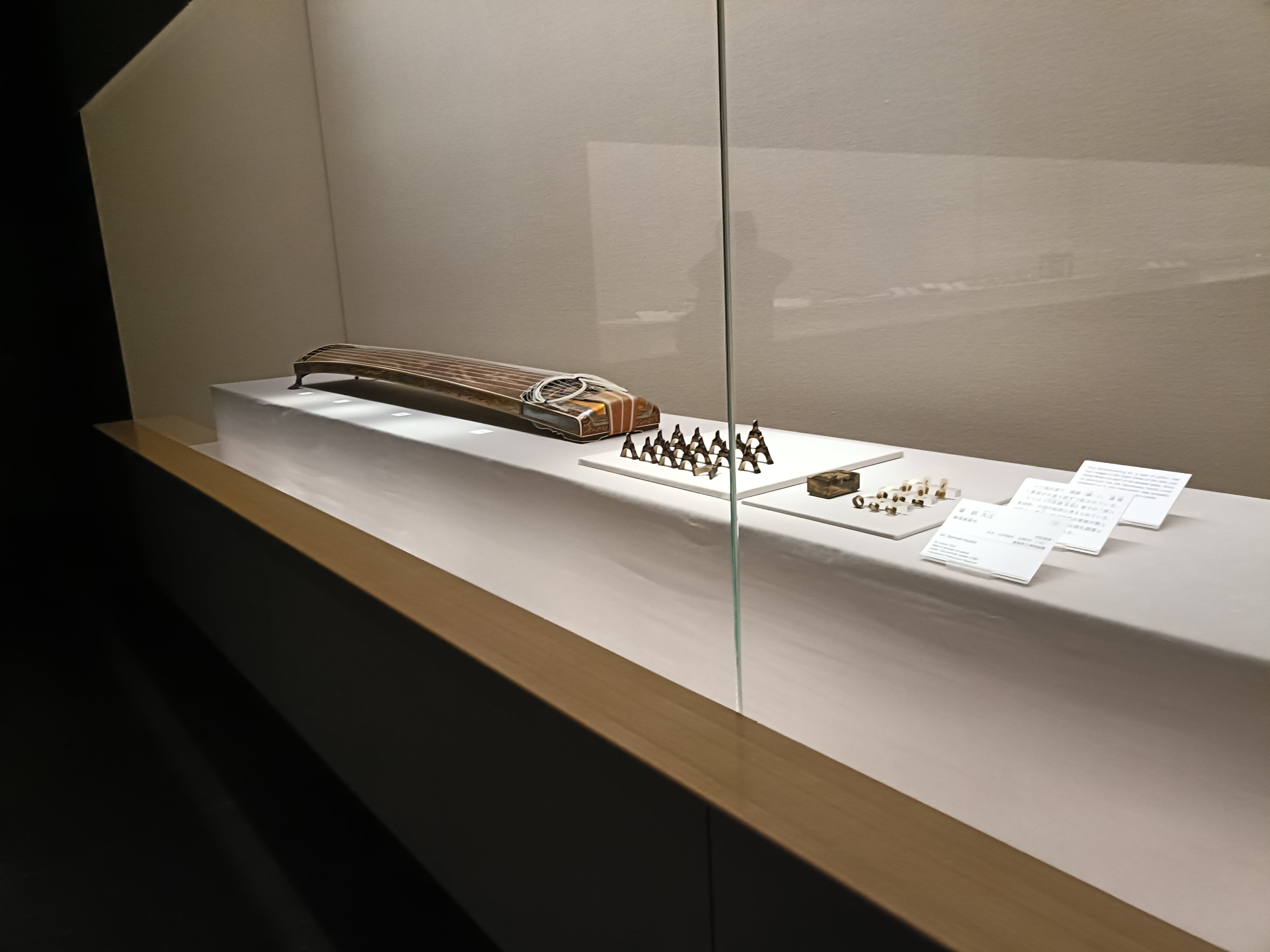 また葦手文字を用いた優美な太刀の拵《塩山蒔絵細太刀拵》や、瀟湘八景図が描かれた《箏 銘九江》といった、蒔絵技術を他の芸術分野と融合させた作品も手がけており、桃葉の芸術性の幅広さを見ることができます。
