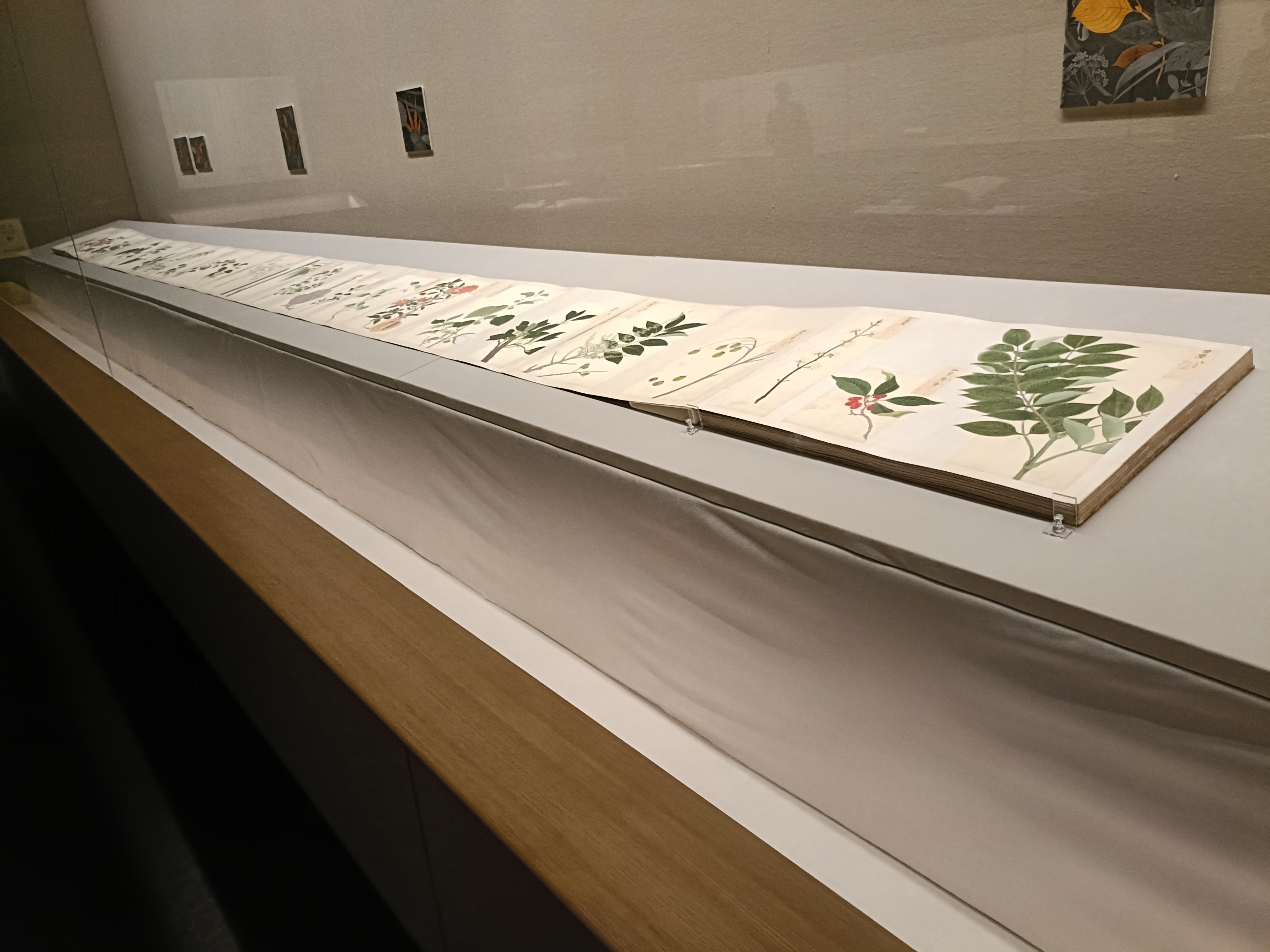 頼恭の命により制作された博物図譜《衆芳画譜》は、対象の特徴を精密に写し取った美しい彩色が特徴で、「百草蒔絵薬箪笥」の蓋裏の図像との関連性が感じられます。