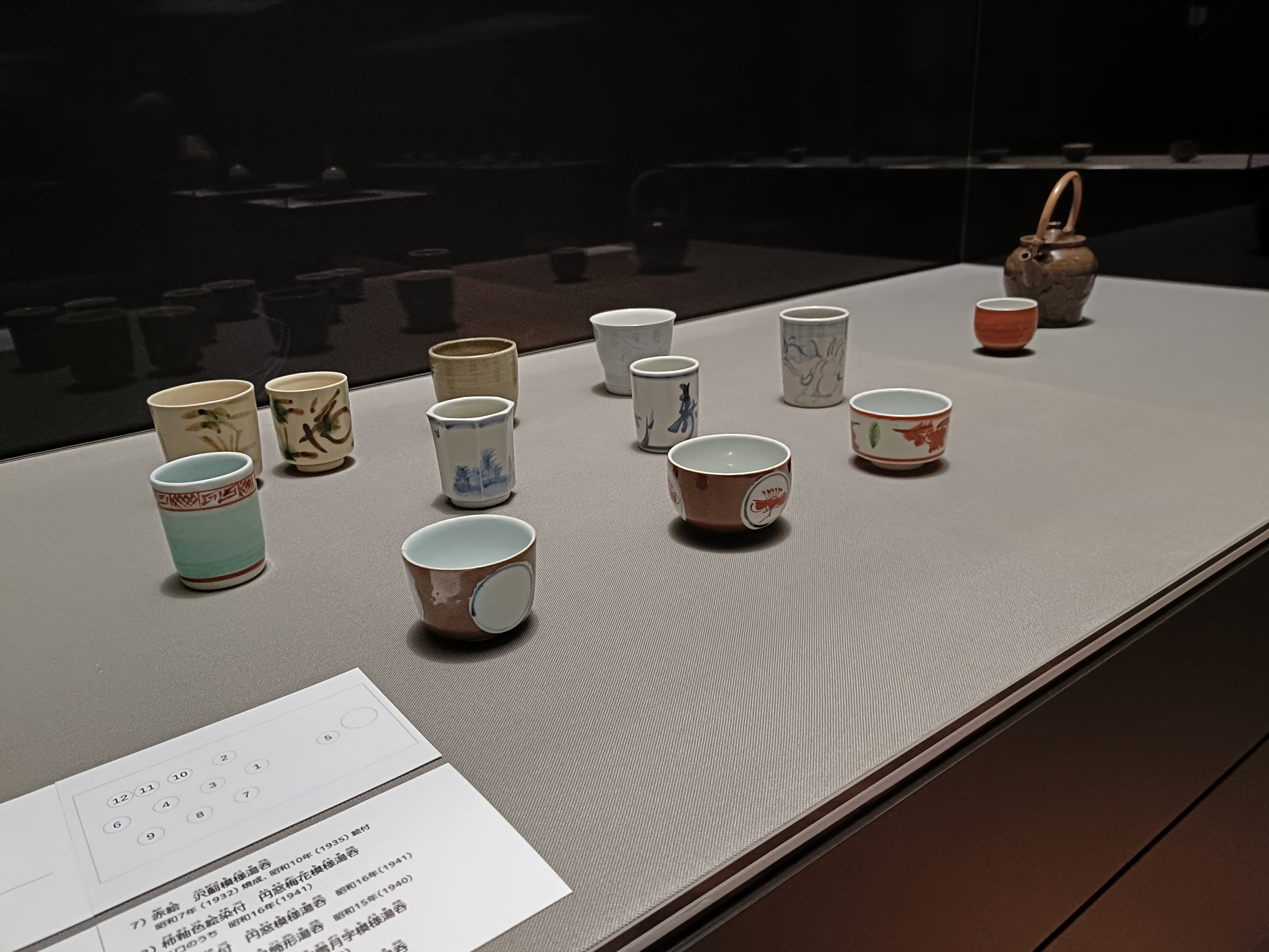 「富本憲吉と人間国宝 暮らしを彩る近現代のうつわ」では、主に重要無形文化財保持者、いわゆる人間国宝 による作品が展示されています。富本憲吉の《色絵 赤更紗模様皿》や各種の湯呑をはじめ、荒川豊蔵、金重陶陽、北大路魯山人など、日本の近現代陶芸を代表する作家たちの作品を見比べながら鑑賞することができます。