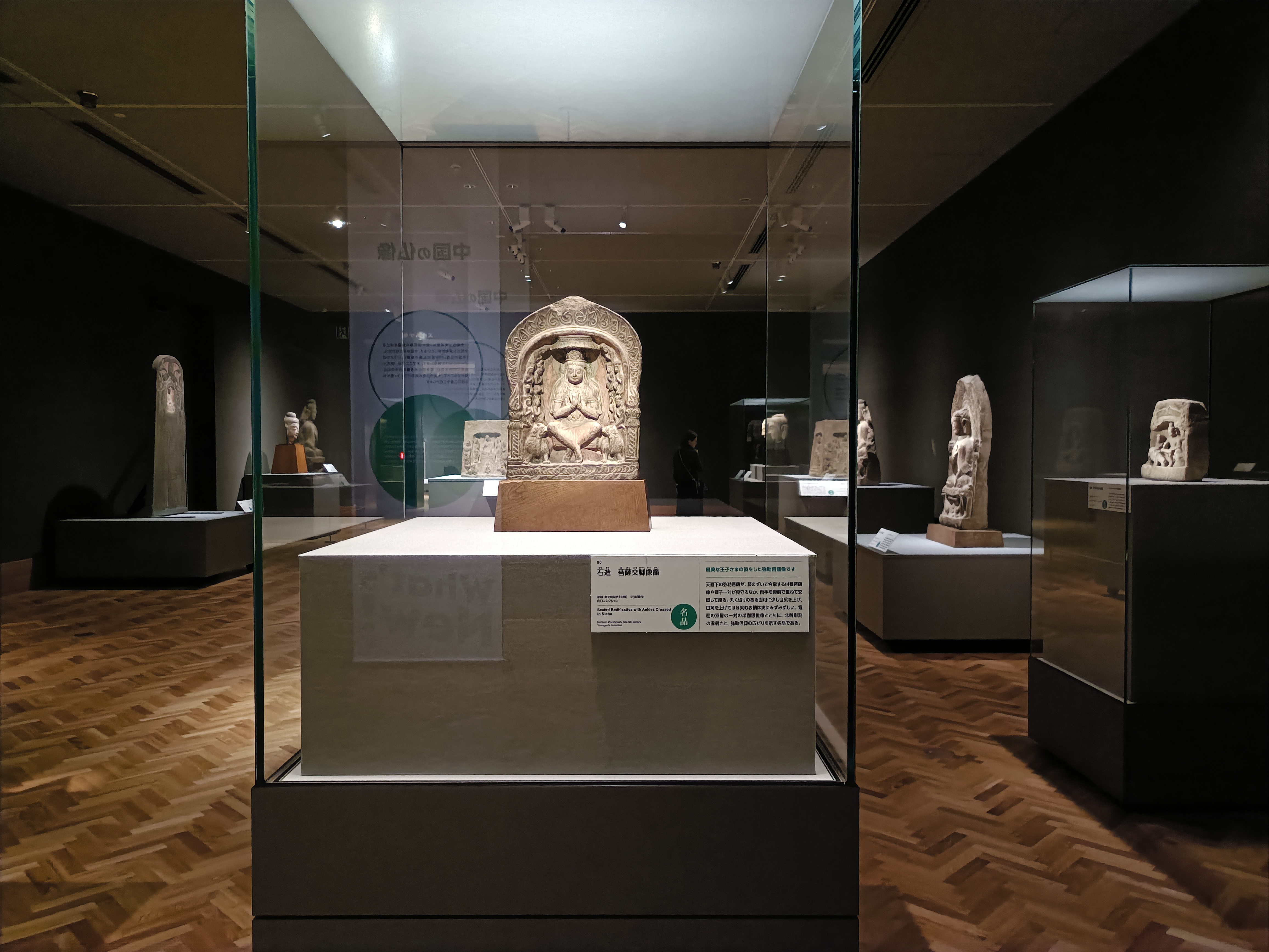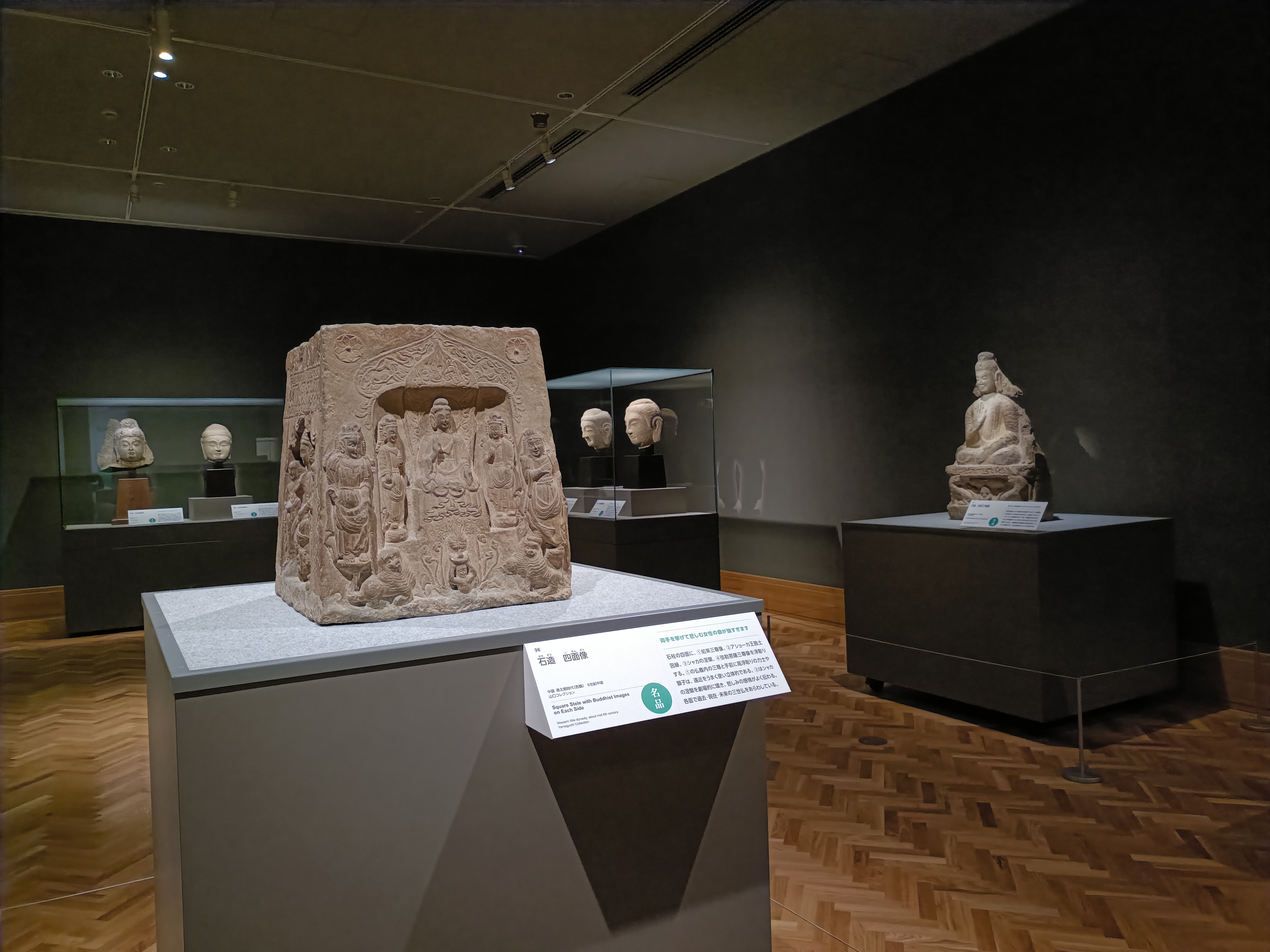 第2会場の「中国の仏像」では、雲岡石窟や天龍山石窟、龍門石窟といった中国を代表する石窟から将来された仏像が展示されています。《石造 菩薩交脚像龕》は、中国・南北朝時代(北魏)の作品で、優美な姿が印象的です。また、《石造 四面像》は、6世紀中頃の西魏時代の作品で、四面それぞれに異なる場面が彫られた珍しい作品です。