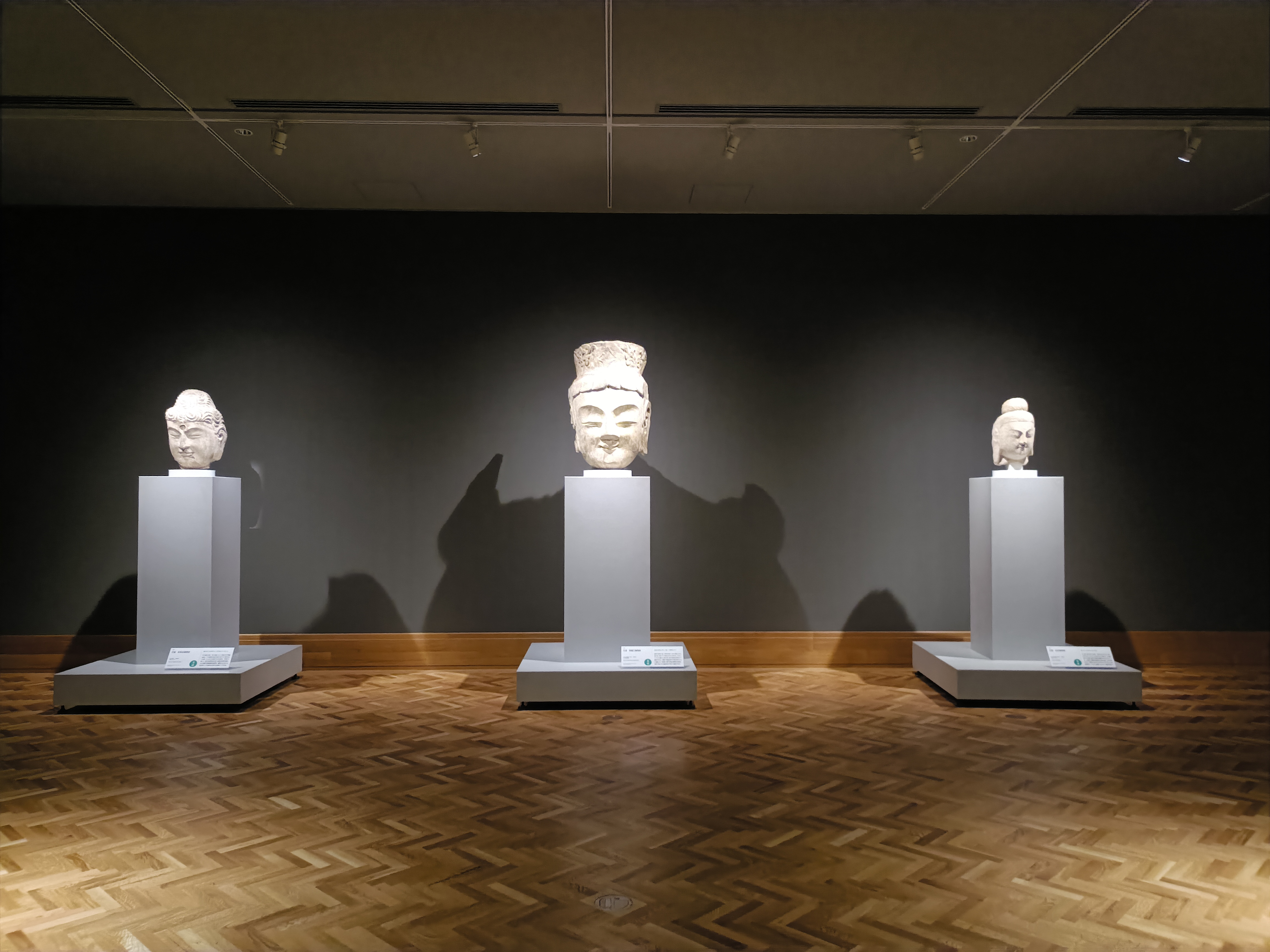 「中国の仏像のお顔」では、河南省・龍門石窟将来の菩薩立像頭部や、山西省の雲岡石窟将来の如来像頭部など、中国各地の石窟寺院から集められた仏像の頭部が展示されています。それぞれの時代や地域の特徴を反映した表情豊かな仏像の顔に、古代中国の美意識を感じ取ることができます。