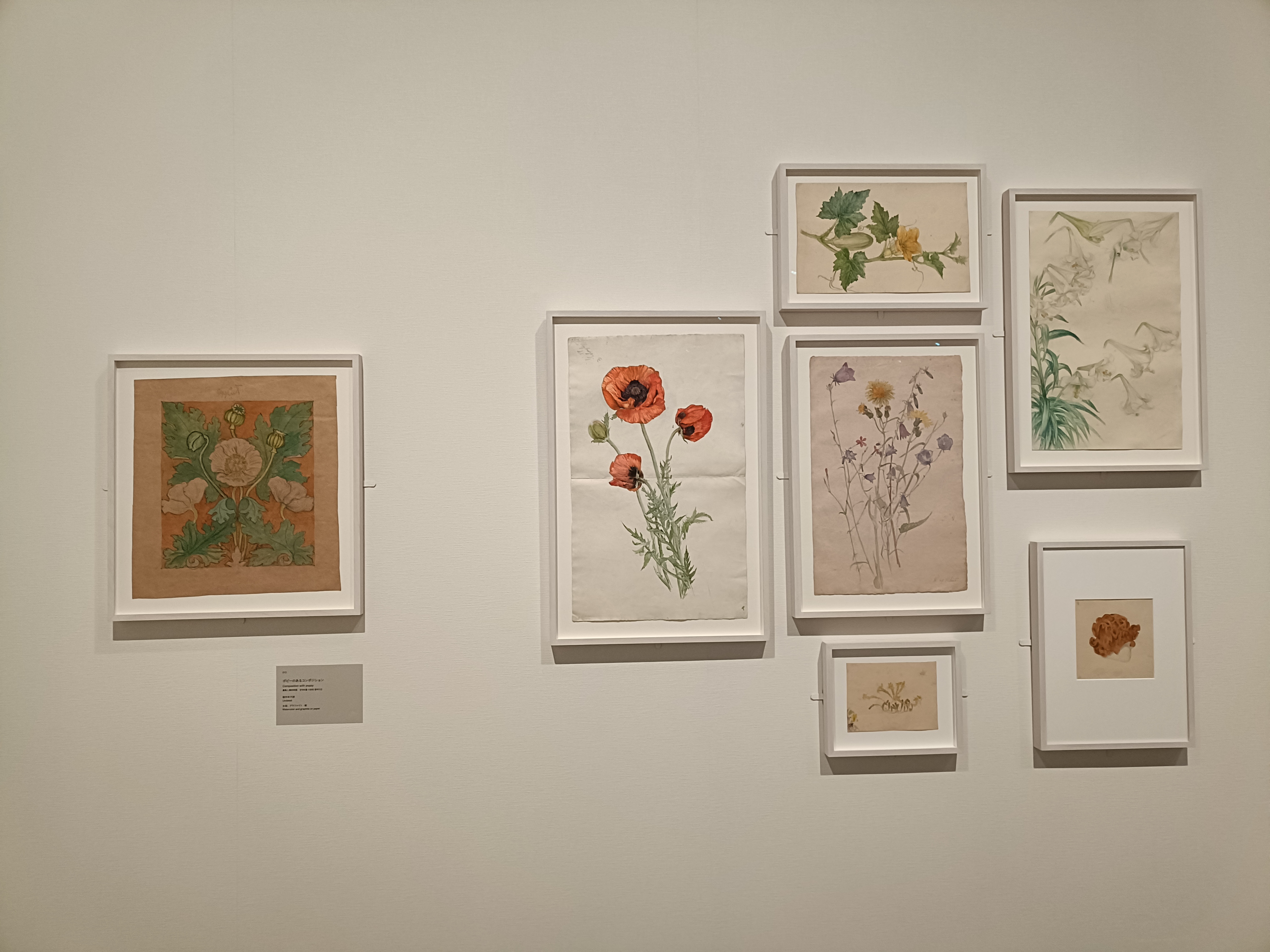 これらのドローイングは、波線のシンプルなものから、植物や天体を思わせる複雑なモチーフまで多岐にわたり、彼女が自然描写を超えた新しい視覚表現を模索し始めたようすがうかがえます。