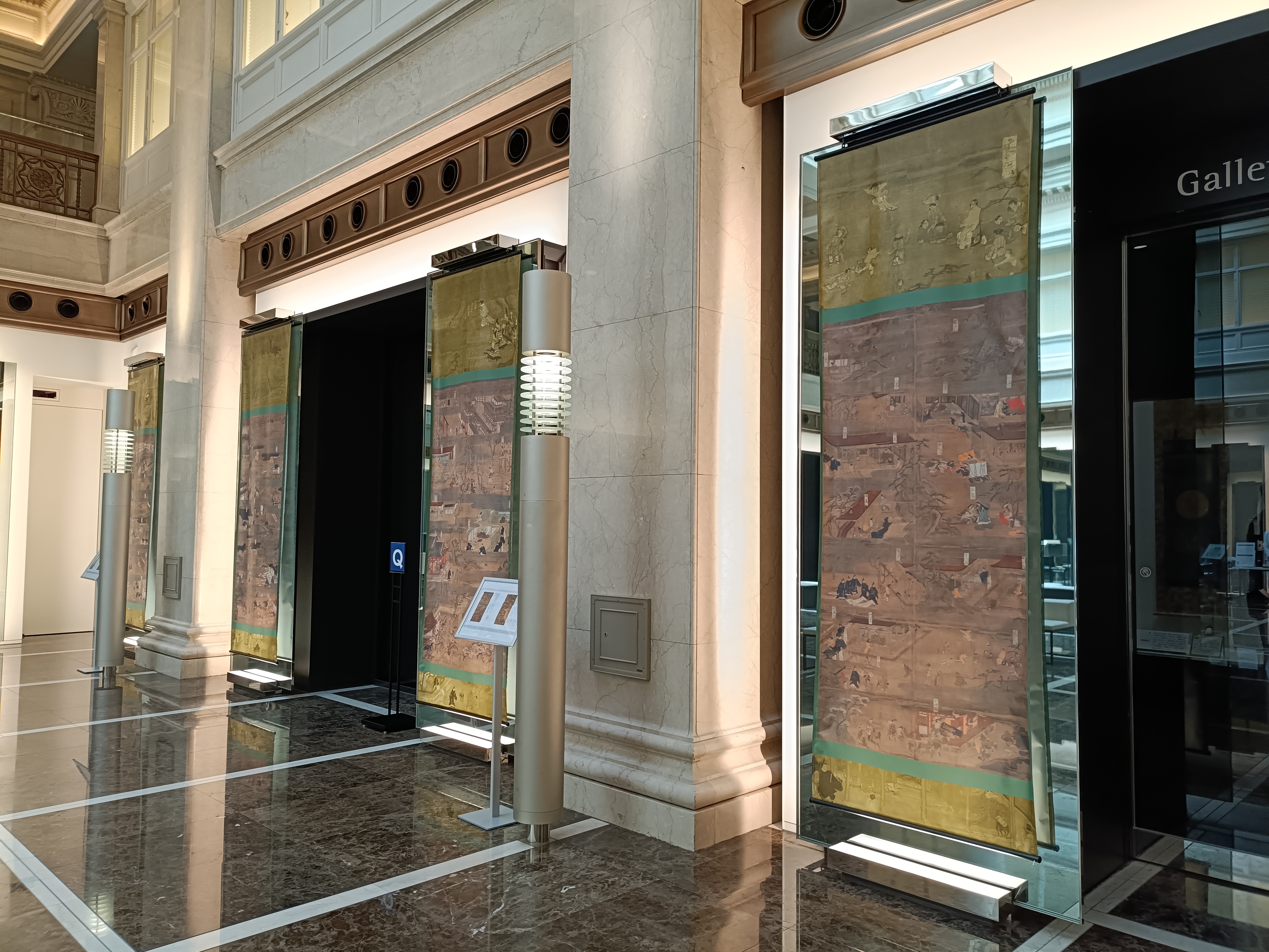 今回は、前期に1・2幅、後期に3・4幅が展示されますが、、ホワイエに掲出されたバナーでは、全4幅を通期で、詳しい解説とともに見ることができます。