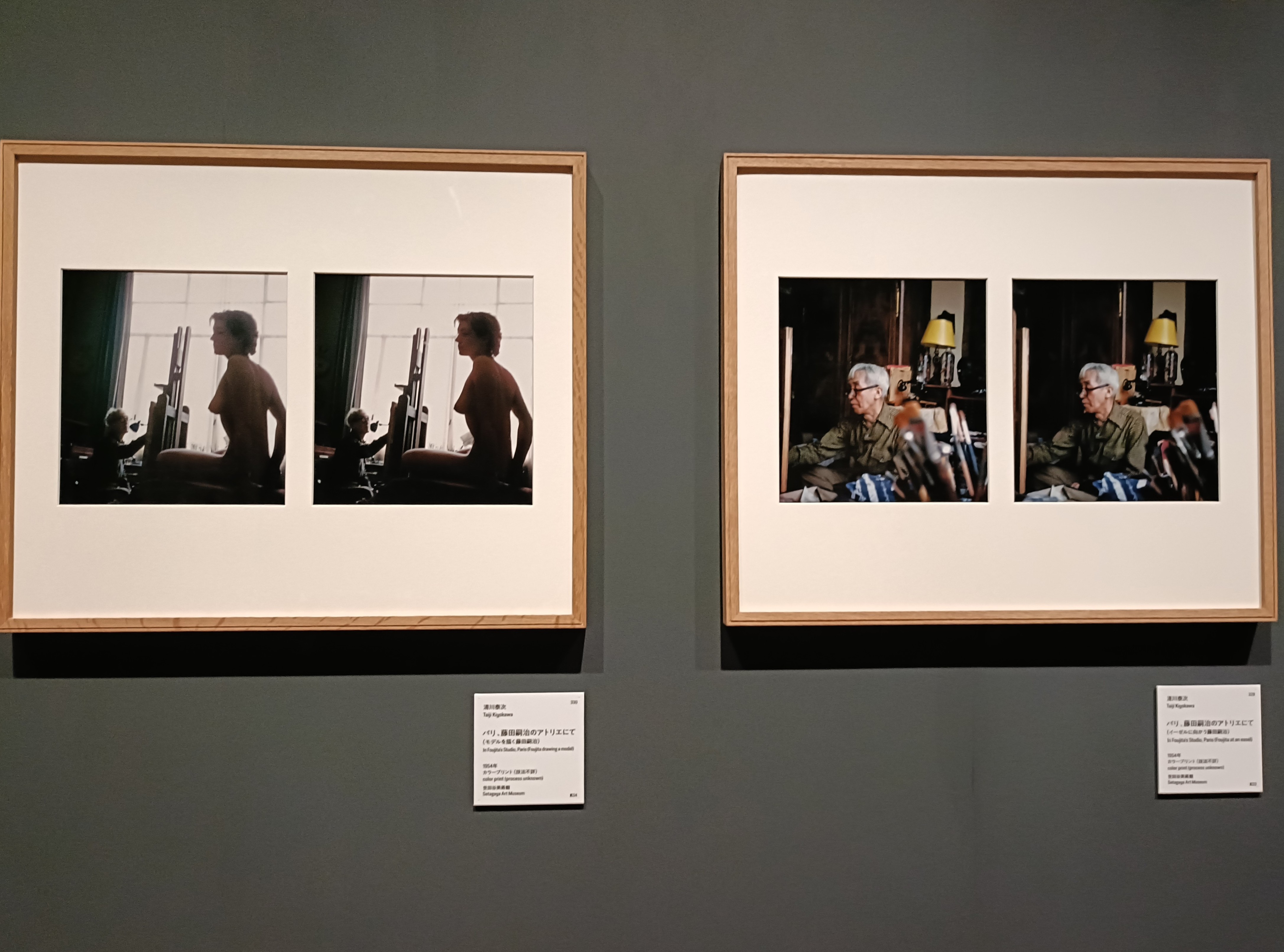(左から)清川泰次《 パリ、藤田嗣治のアトリエにて(モデルを描く藤田嗣治)》1954年、清川泰次《パリ、藤田嗣治のアトリエにて(イーゼルに向かう藤田嗣治)》1954年 いずれも世田谷美術館