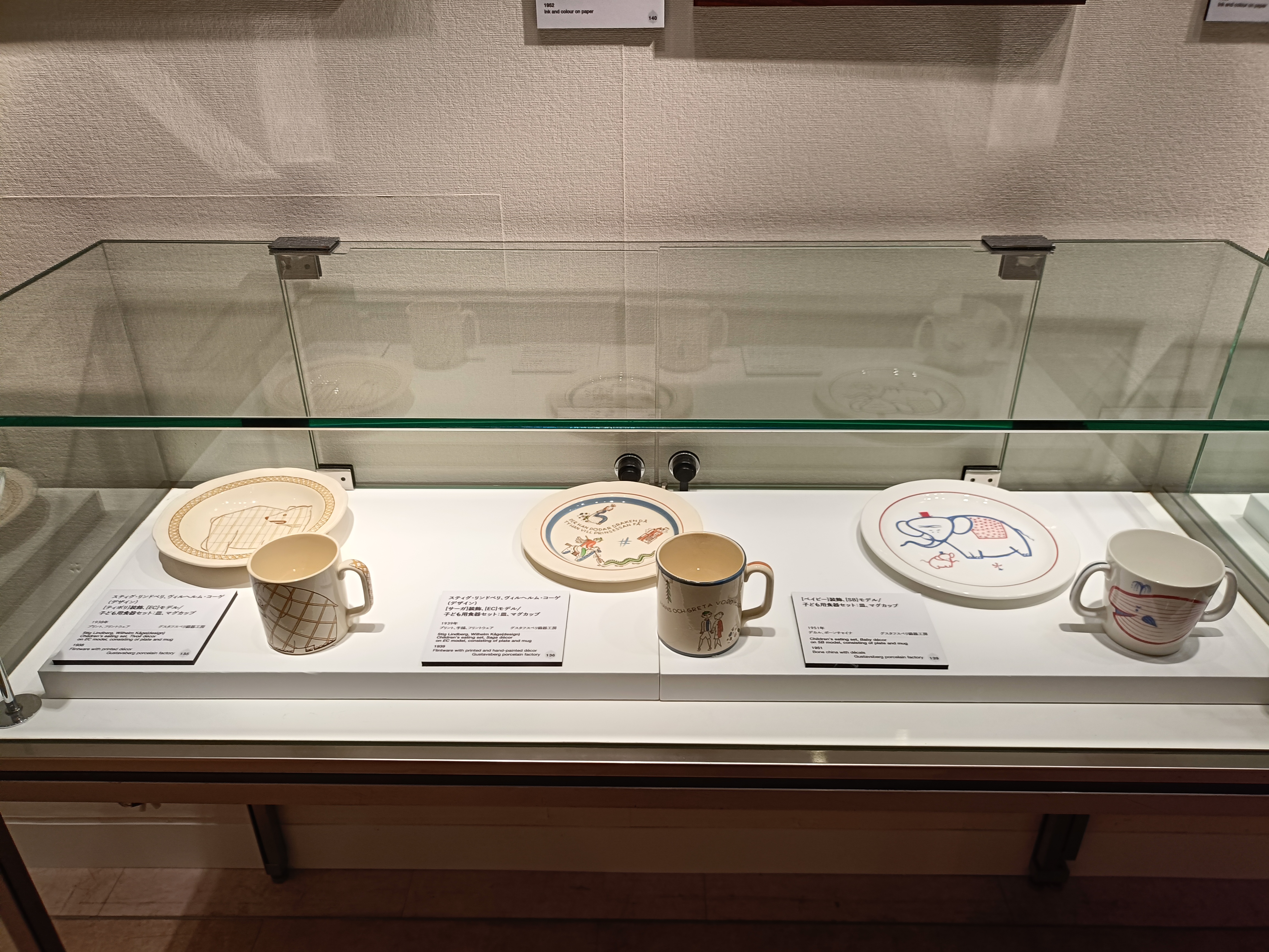 グスタフスベリ販売部長のステューレ・ エングストランドが、リンドベリのデザインの中で最も美しい と評した [LF] モデルをはじめ、有名な葉っぱ模様の[ベルサ]、青いプラムが愛らしい[プラム]といった、著名なシリーズが並びます。