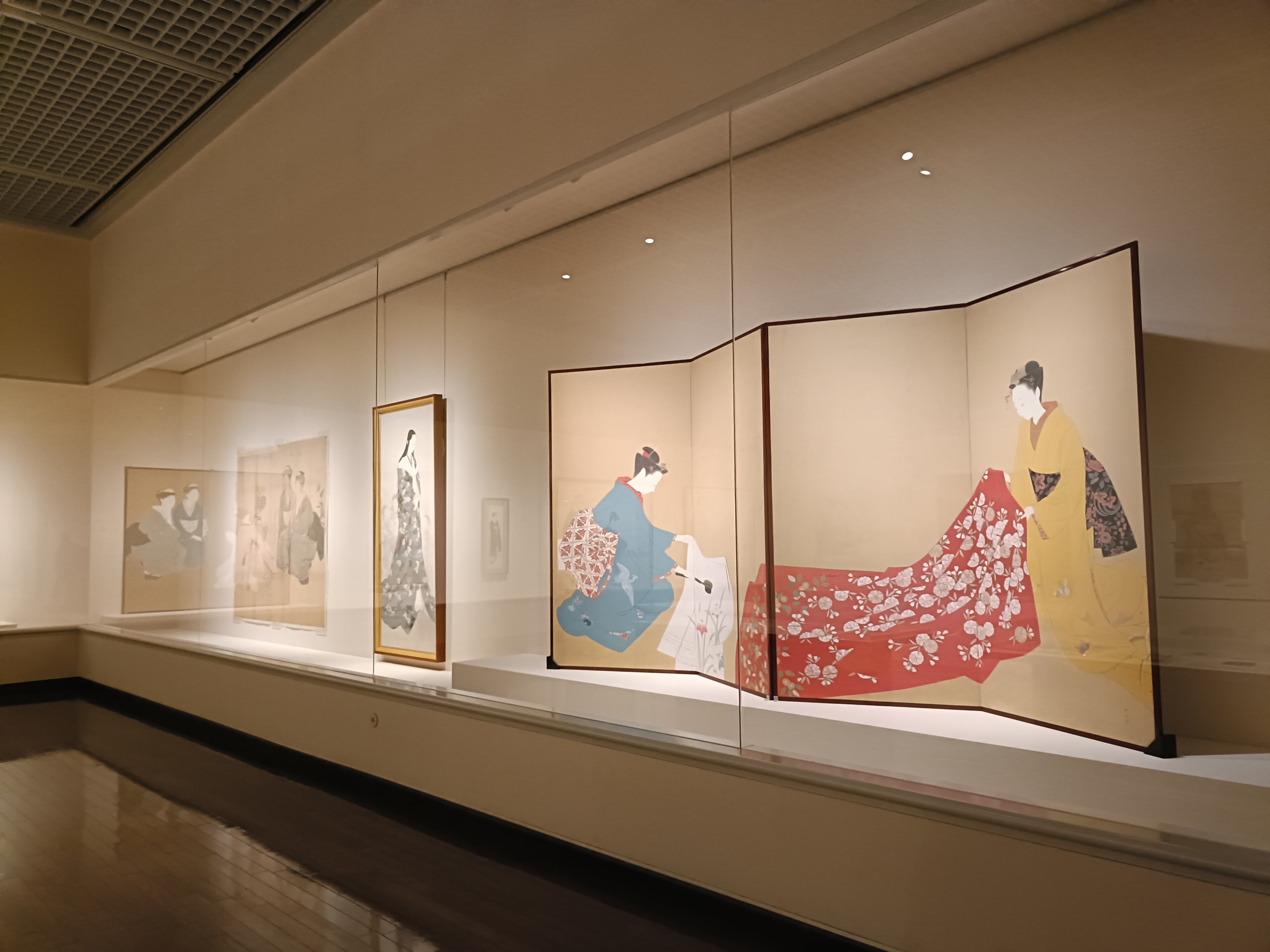 晩年の作品では、女性の髪の色が明るさを増し、背景の色彩もより鮮やかになっていきます。家にこもりがちになった映月が描いたのは、感情の大きな起伏ではなく、ささやかな日常の中で自然とともに生きる女性たちの、細やかな心のひだでした。