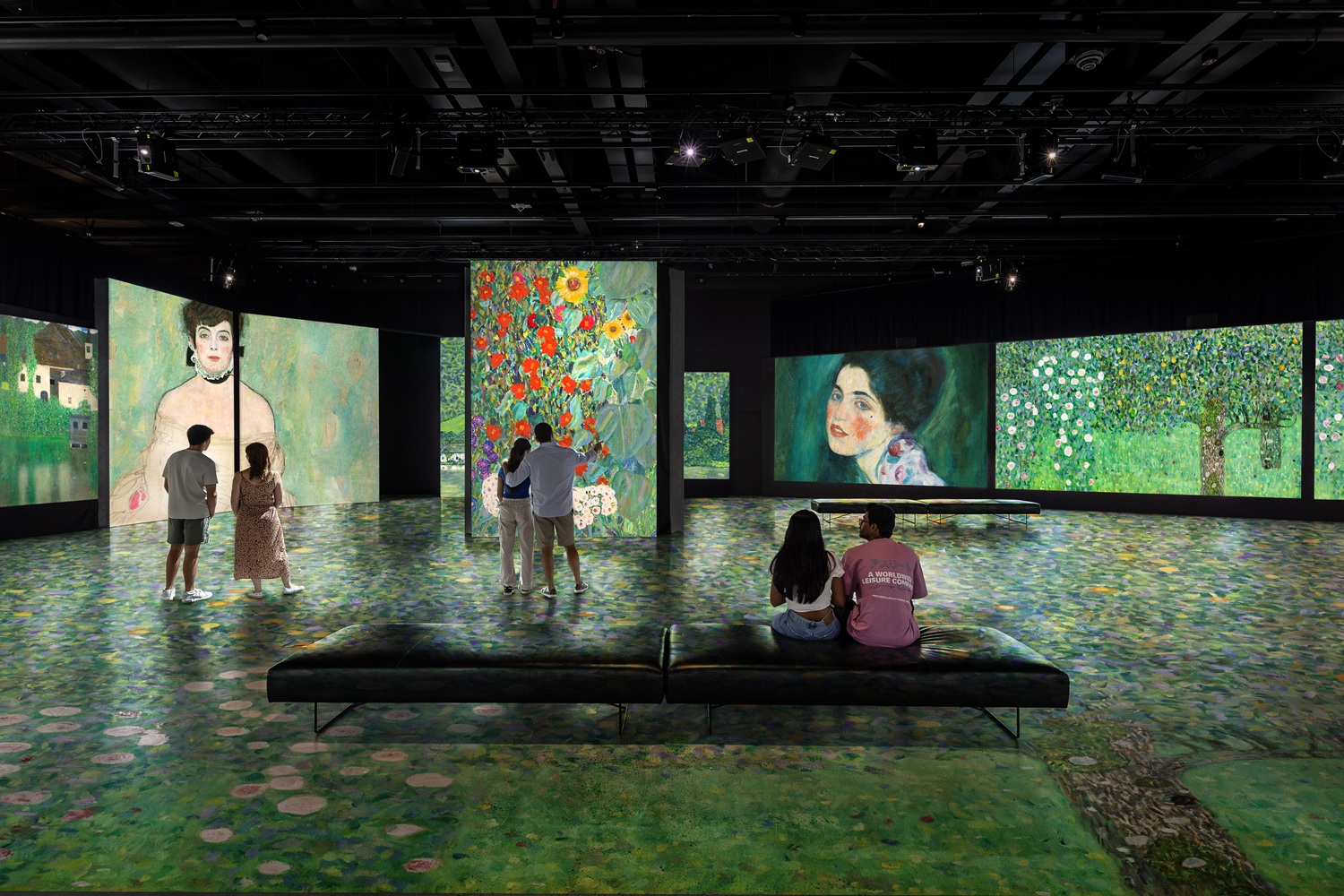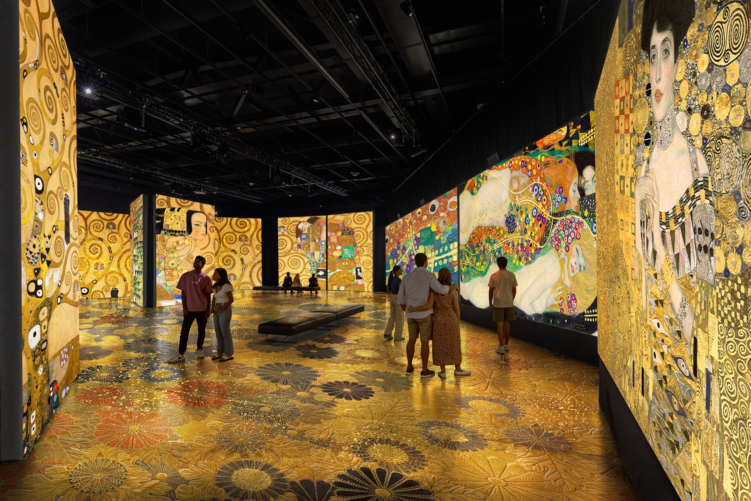 360度を囲む巨大なスクリーンには、クリムトの代表作であり、黄金時代の集大成ともいえる《接吻》をはじめ、数々の傑作が巨大スクリーンに映し出されます。