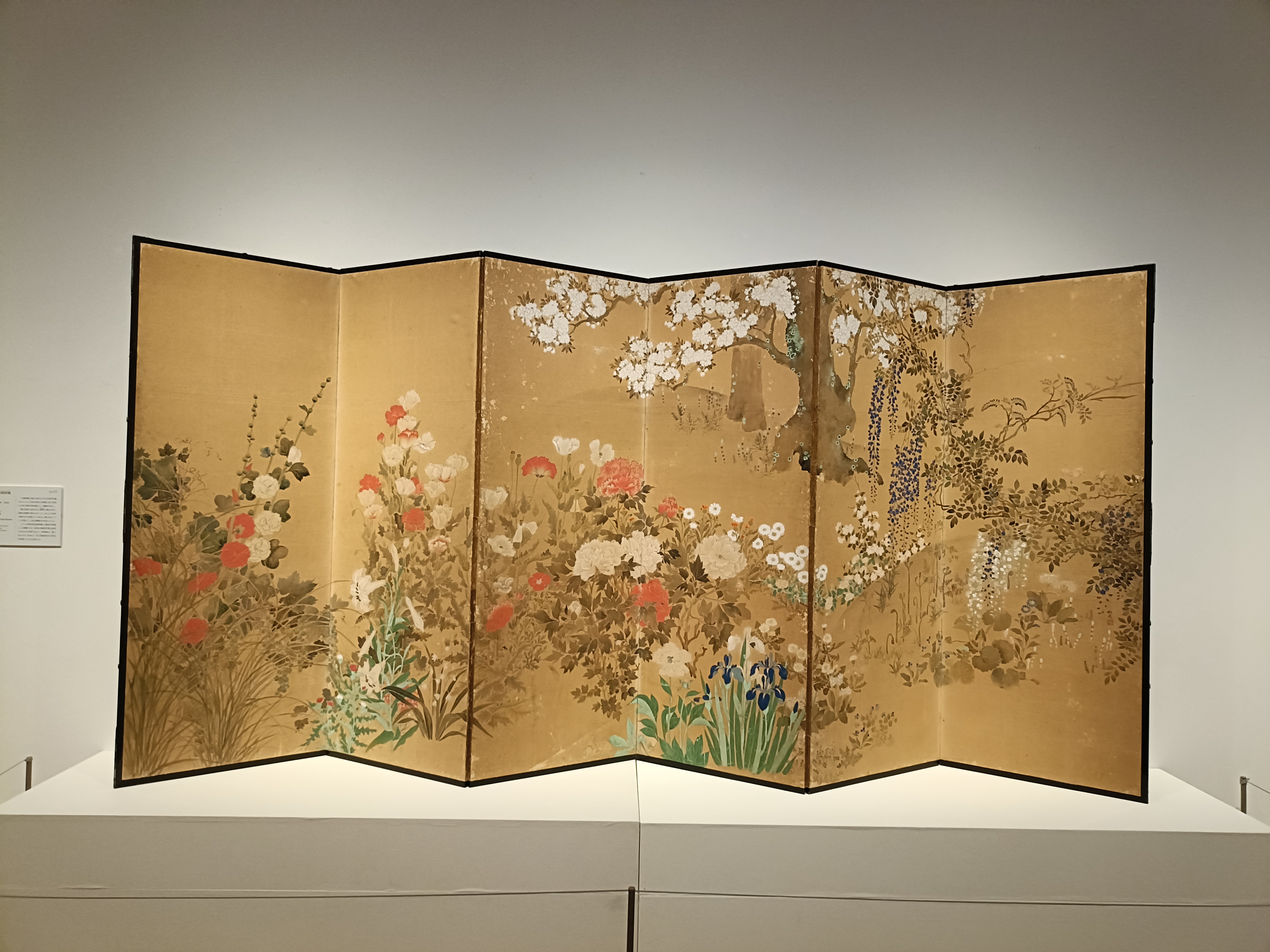 足立秋英《四季花卉図屏風》 幕末-明治初期頃 大分県立美術館