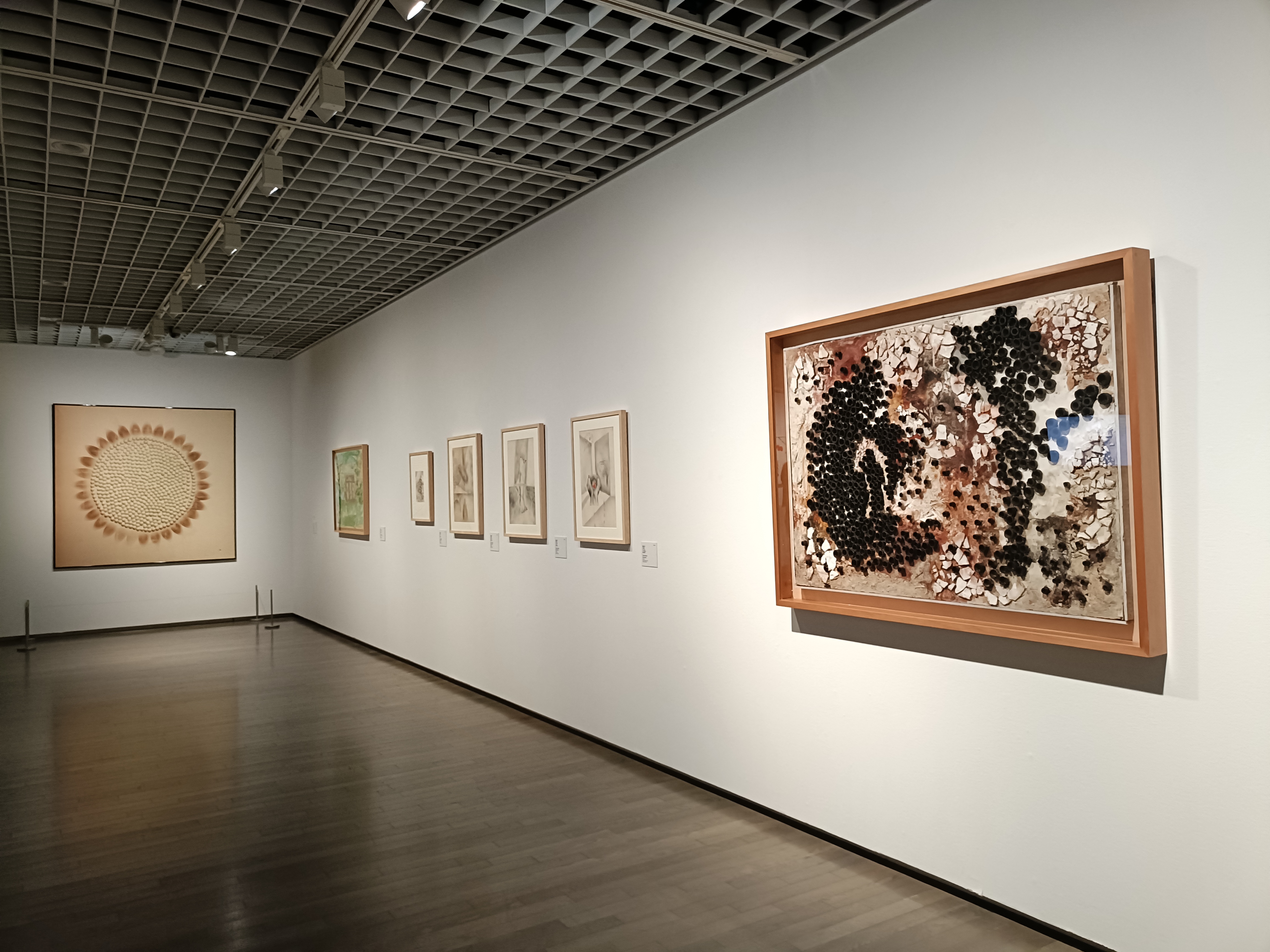 《作品R》(1960)、《作品》(1961)などの作品は、壁のような重厚さと、光が透けるような透明感をあわせ持ち、観る者を奥深い世界へと誘います。